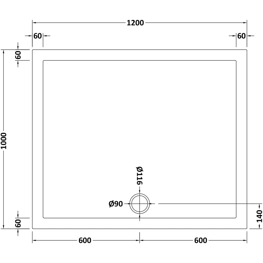 nuie White Rectangular Slimline shower tray 1200 x 1000mm