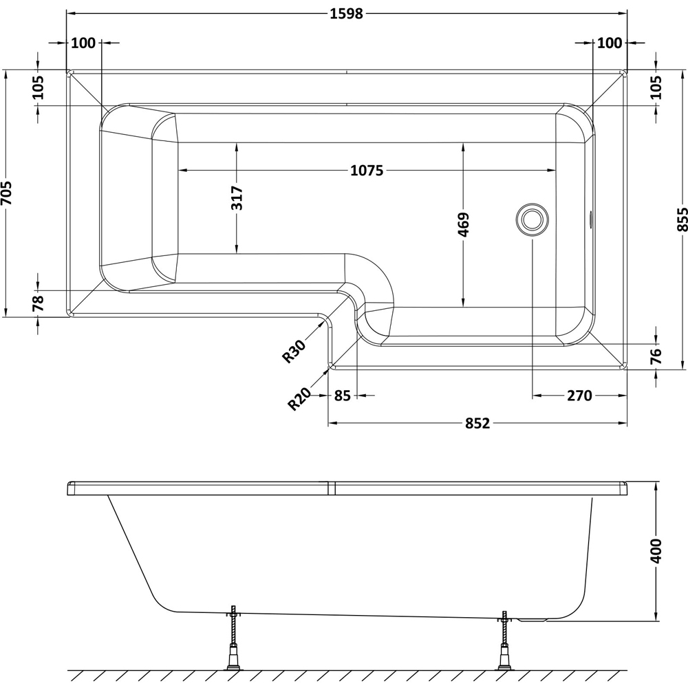 The 1600mm nuie White Right Hand Square Shower Bath lets you enjoy a relaxing soak or a refreshing shower. Crafted from sanitary-grade acrylic, its pristine white finish ensures a stylish addition to any bathroom. Designed for space-saving convenience, this shower bath is easily converted into a shower enclosure with a bath screen (sold separately). Delivered undrilled and complete with a leg set, this premium bath offers exceptional quality. Bath panels are sold separately.