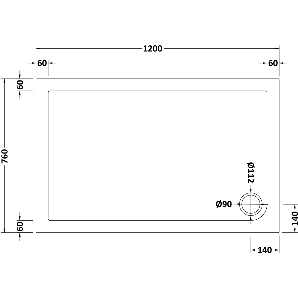 nuie White Slip Resistant Rectangular Shower Tray 1200 x 760mm