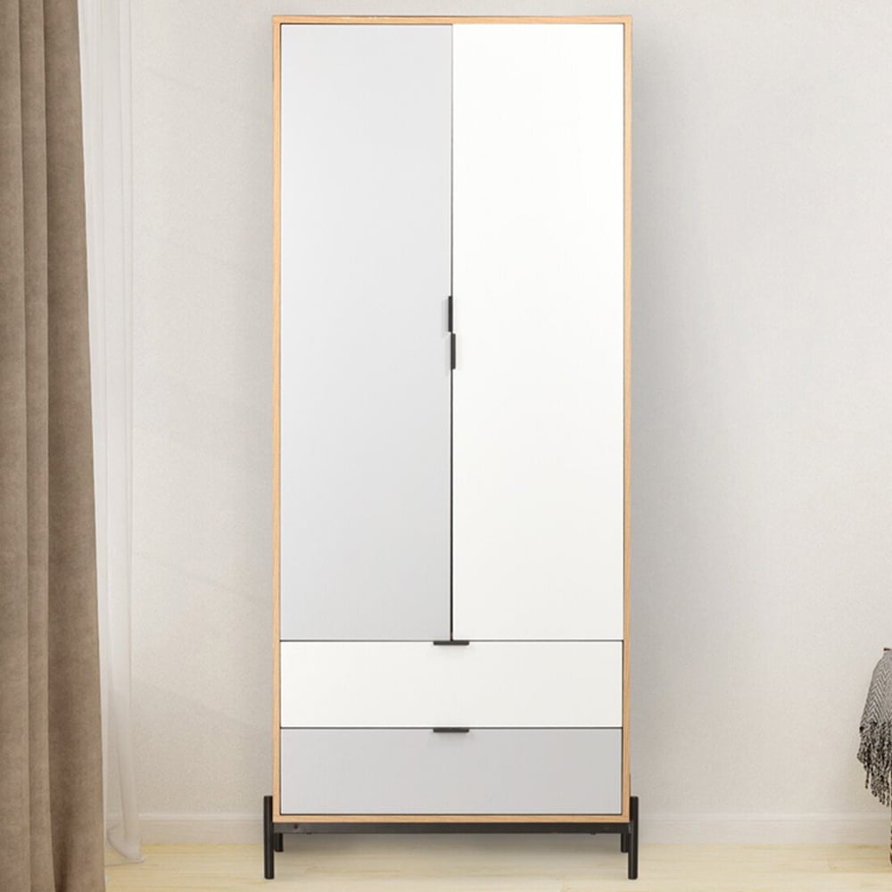 Odin 2 Door 2 Drawer White and Grey Wardrobe