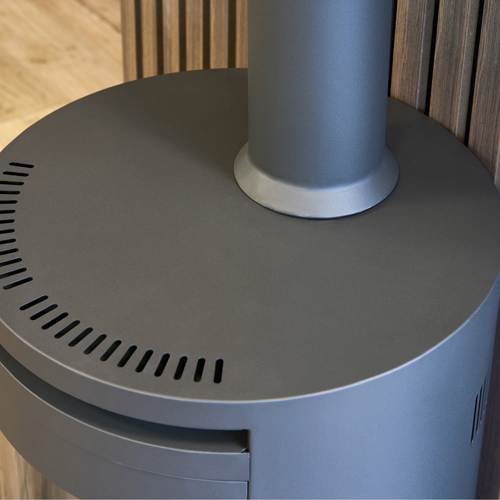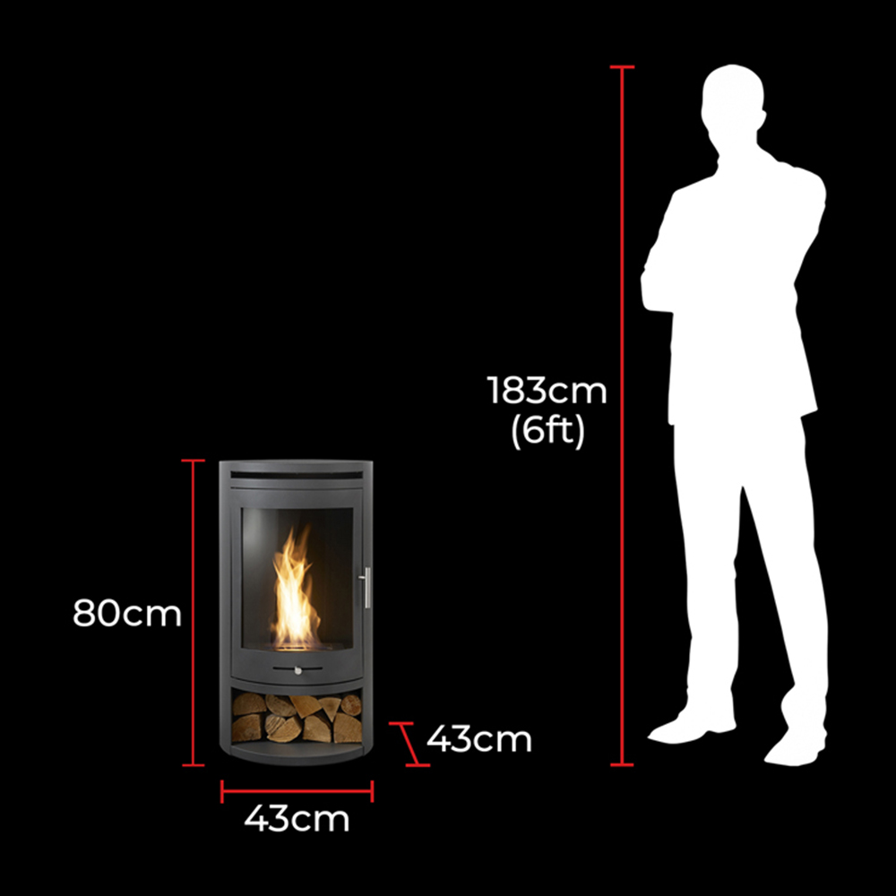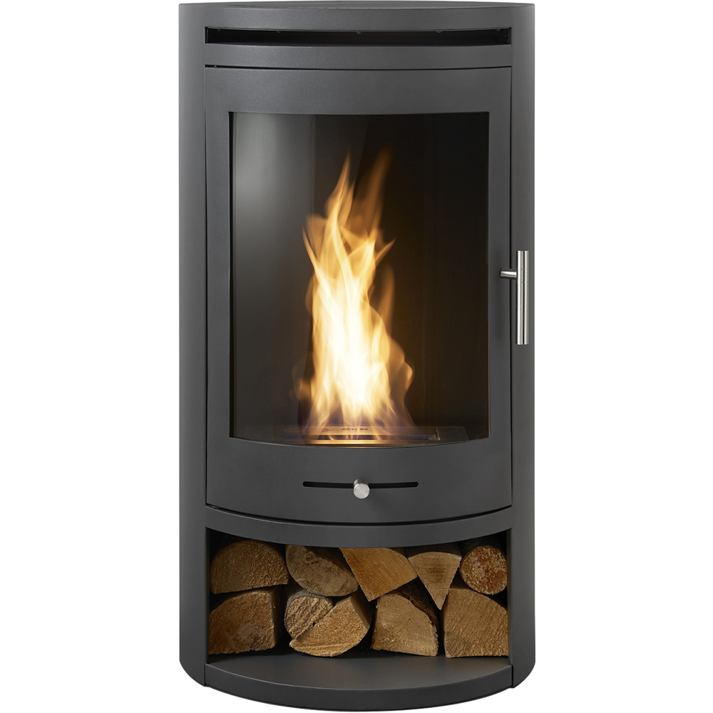 • Features charcoal grey bio ethanol cylinder stove with log storage