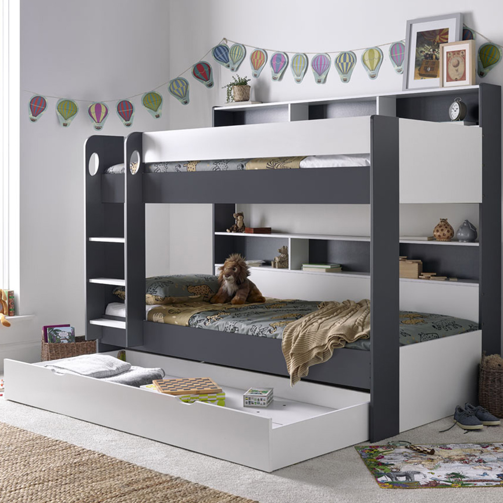 Oliver Grey and White Single Drawer Storage Bunk Bed