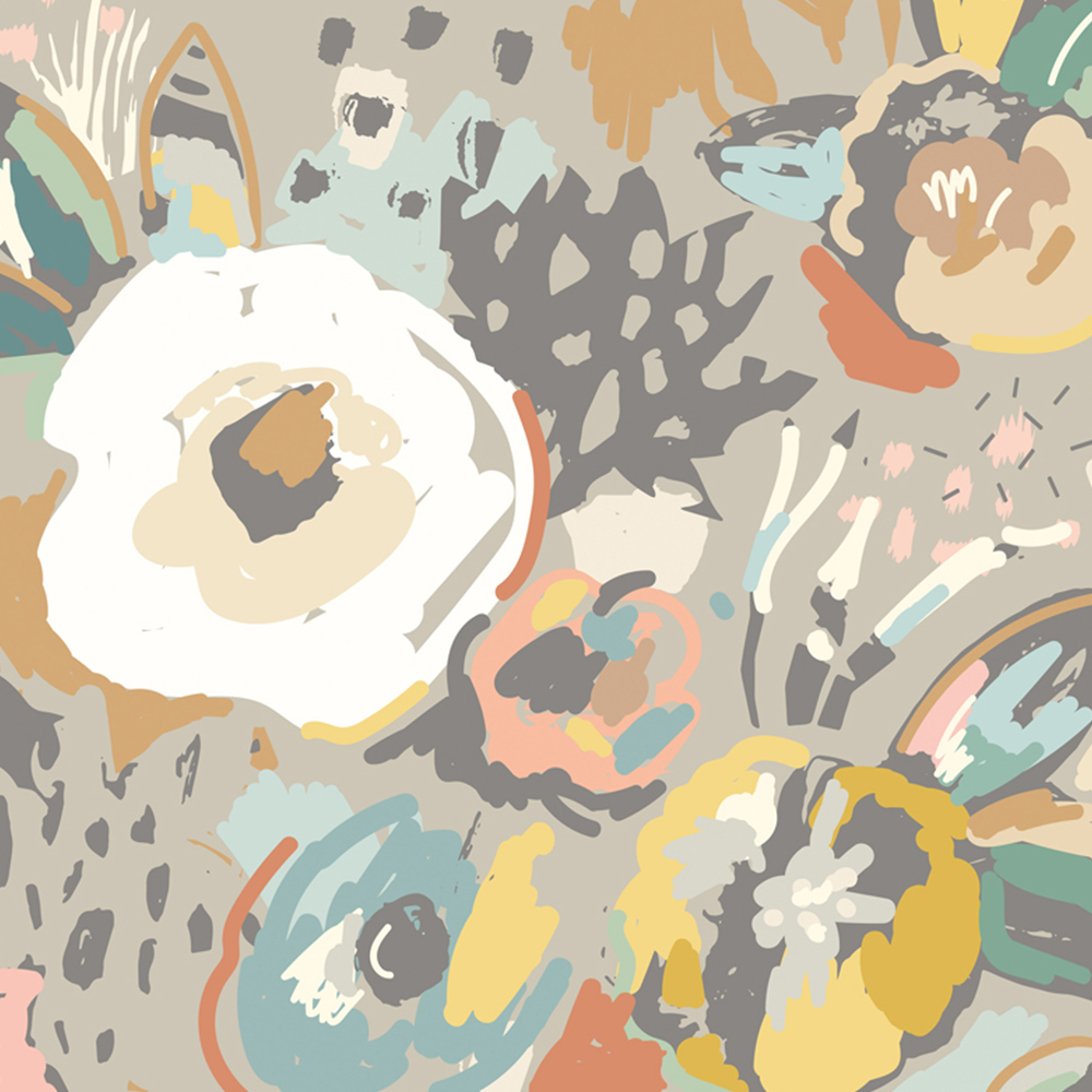 Origin Murals Abstract Floral Grey Wall Mural
