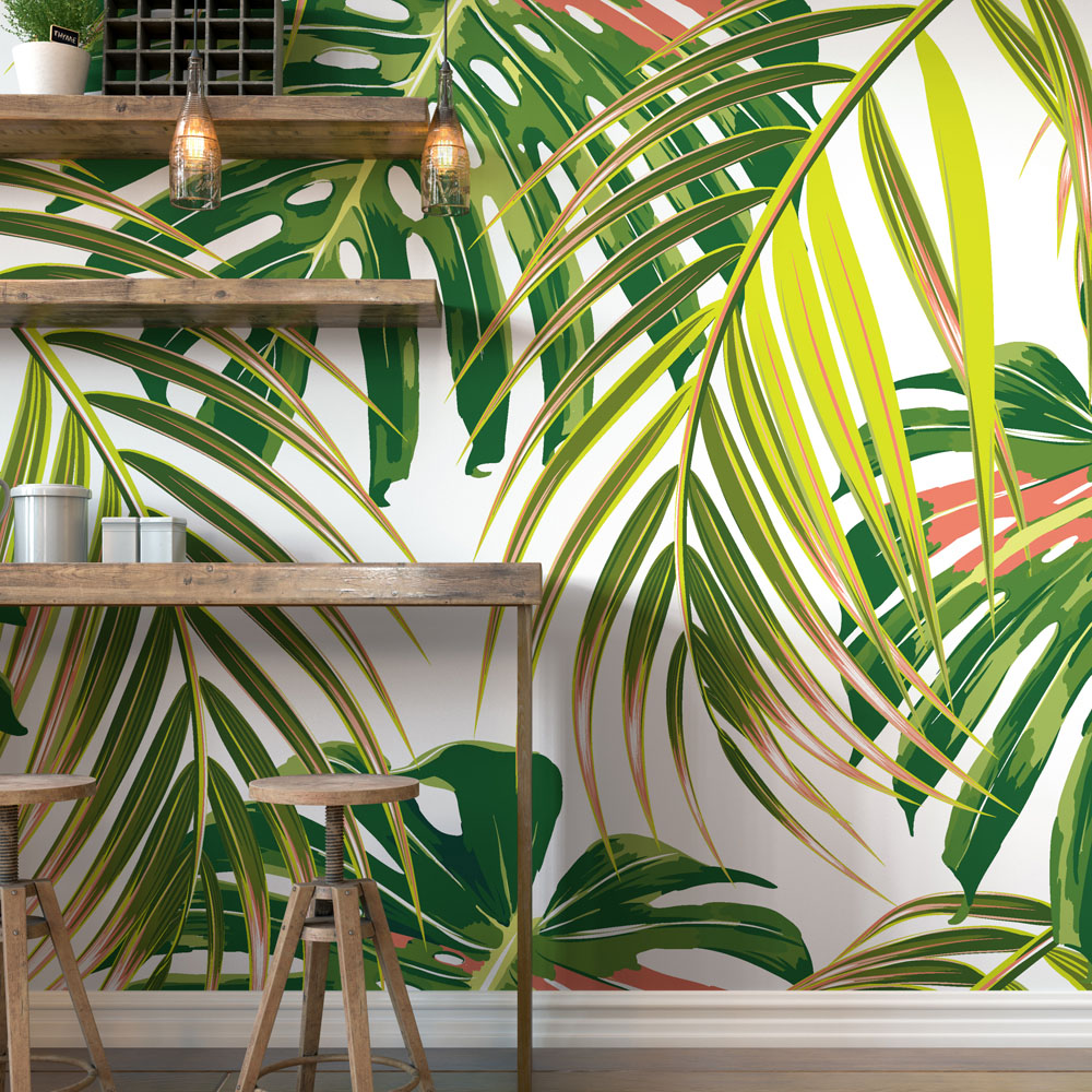 Transform your space with the Graphic Flower Green Wall Mural, a captivating design showcasing a large-scale tropical foliage pattern draping from all directions in an organic design. The artistic brushstrokes create depth and rich tonal variations, adding dimension to any room. This complete, single-roll mural includes easy-to-follow cut guidelines and hanging instructions. A paste-the-wall application ensures effortless installation. Bring the vibrancy of the tropics into your home with this statement piece.