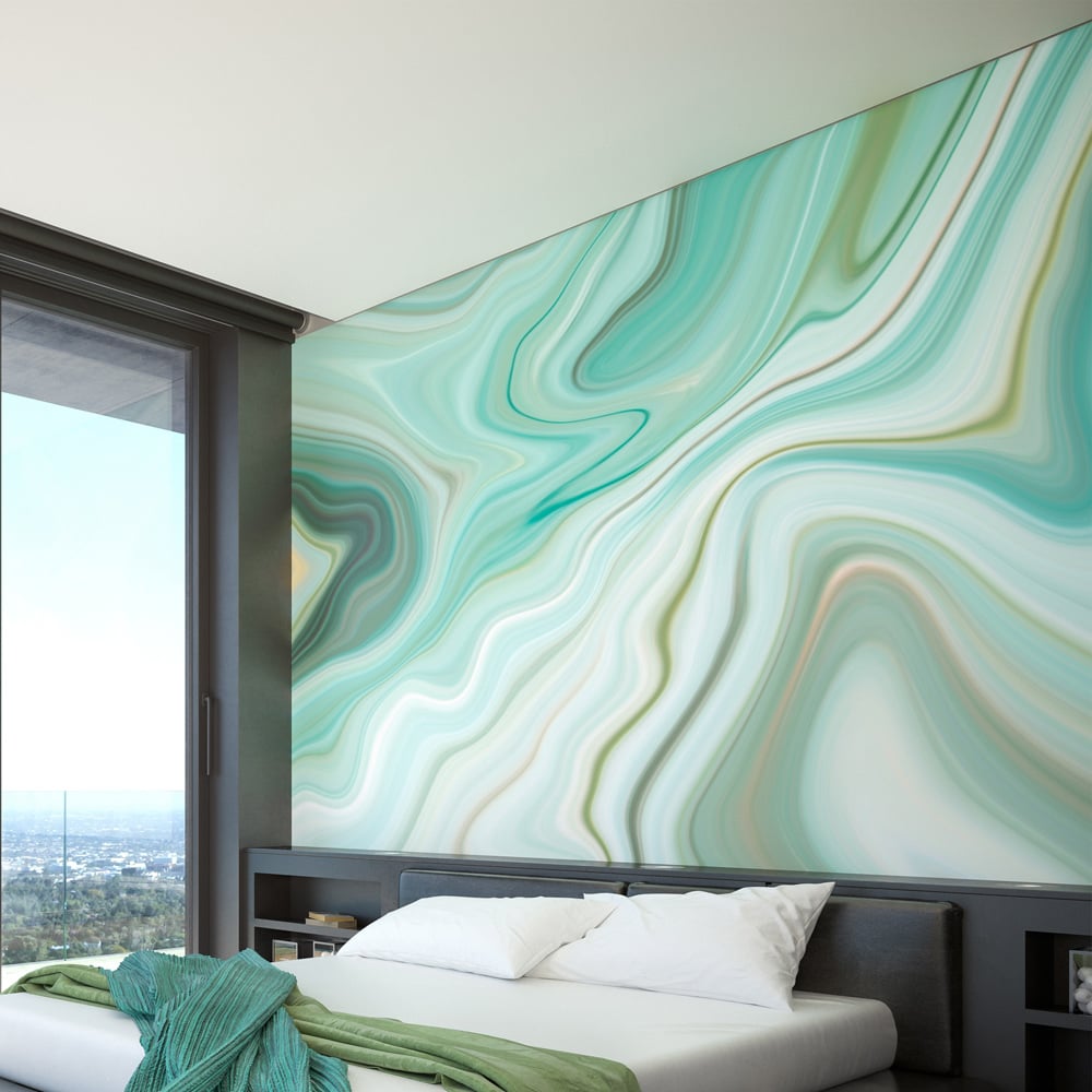 Add a striking and personal touch to your interior with this Marbled Ink Green wall mural. Its abstract design features finely layered colours swirling in organic movement, creating mesmerising patterns. The complete design is printed on a single roll, making application simple with included cut guidelines and hanging instructions. A "paste the wall" application ensures a straightforward installation. This mural brings a captivating visual story to any room.
