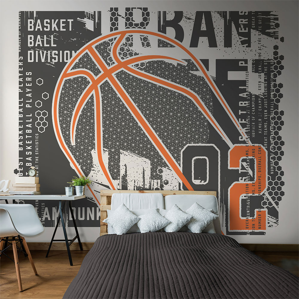 This abstract basketball mural makes a textured, impactful statement. Perfect for any fan, it features an illustrated basketball outline and jersey number set against a distressed background.