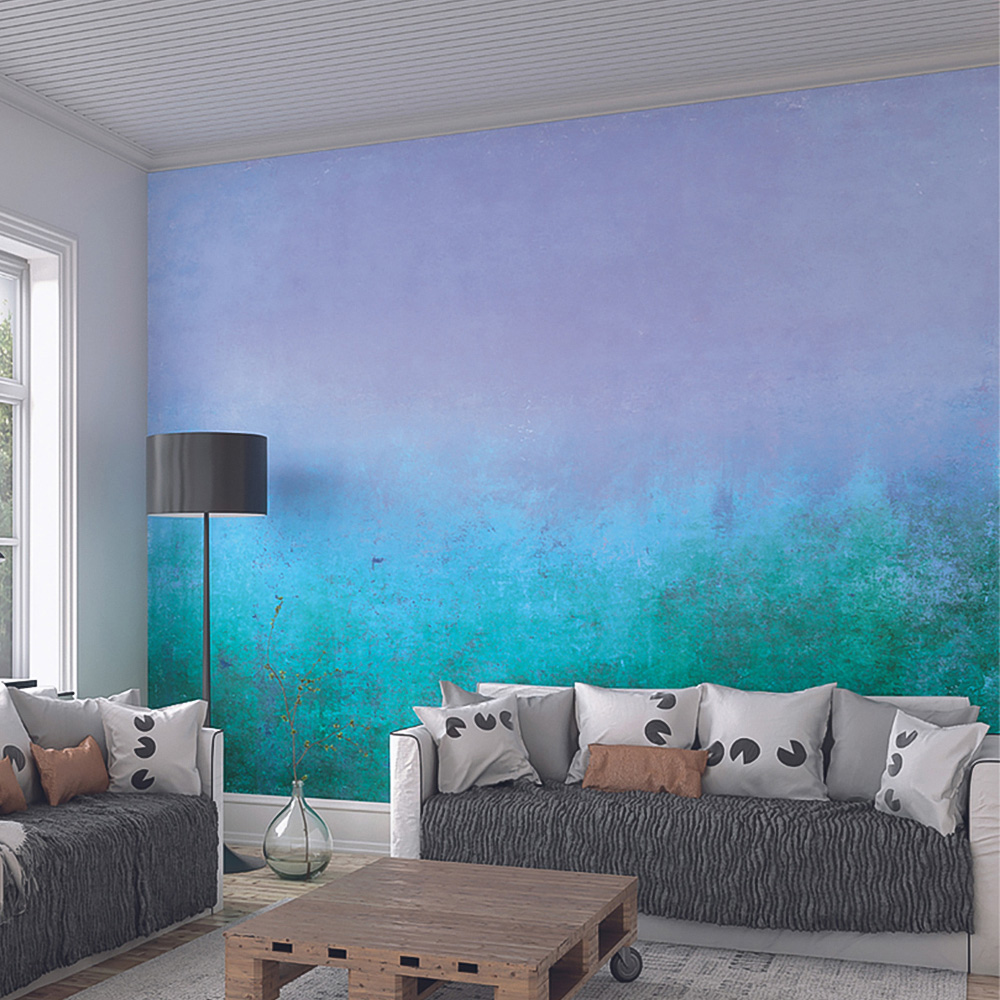 This conceptual mural design features a striking ombre effect, transitioning subtly from dark to light shades, creating an almost misty feel. The misty feel is enhanced by a mottled colouration, lending a distressed quality to the piece.
