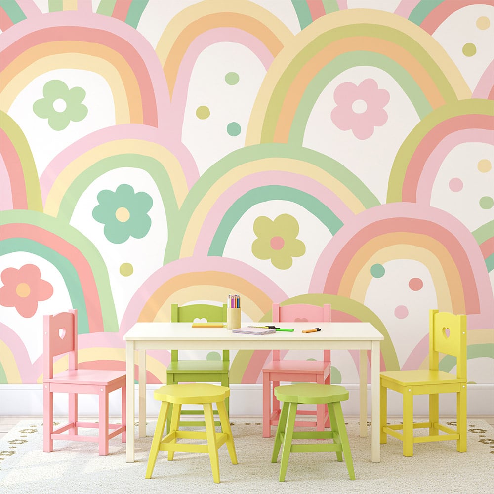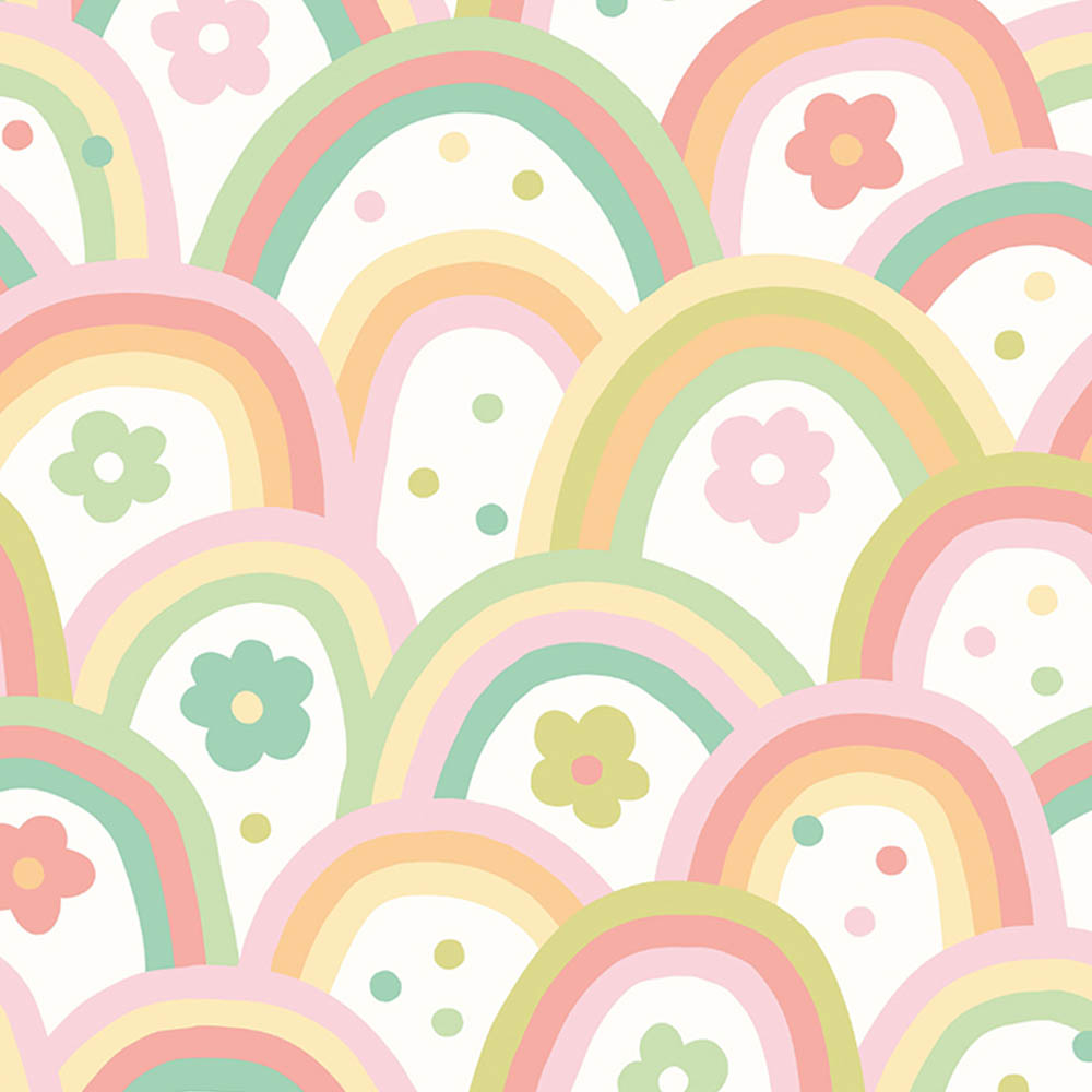 This charming wallpaper design showcases a delightful array of animals, plants, flowers, and trees, all playfully encircled by decorative dots, lines, and doodles. The single-colour background provides a clean, crisp aesthetic, while maintaining a light-hearted, Scandi-inspired feel. Perfect for adding a touch of playful sophistication to any room.
