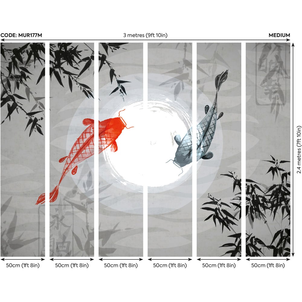 Origin Murals Watercolour Koi Grey Wall Mural