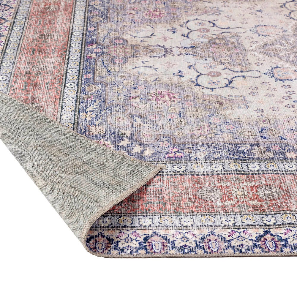 Bring warmth and style to your home with this washable Croft rug. Its 80 x 150cm size and classic Persian design, featuring a central medallion and elaborate border, add a touch of elegance to any room. The distressed look combines rich tones of red, purple, blue, and cream. Crafted from a blend of soft yet durable chenille and TRP, this rug is perfect for high-traffic areas like kitchens, hallways, dining rooms, and living rooms. The non-slip backing ensures safety and stability. Easy to care for—simply machine wash at 30°C (do not bleach) and line dry (air dry only if using a tumble dryer.