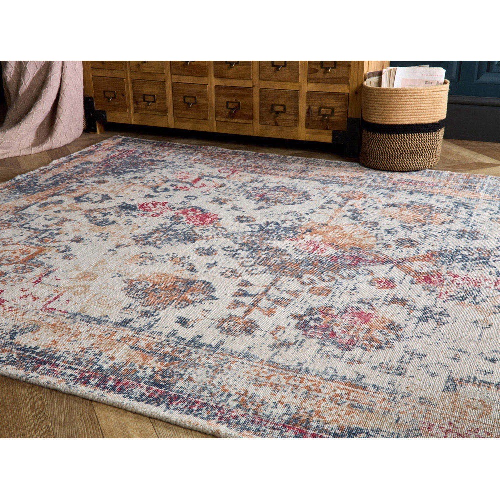 Create a warm and cosy feel in your home with this striking navy and rust rug (120 x 170cm). Its traditional Persian design, intentionally distressed for a timeless vintage look, adds elegance to any room. The fashionable blend of hues offers a contemporary twist on classic styling. Crafted from 100% recycled, soft yet durable PET fibres, this rug is perfect for any room and easy to maintain. An environmentally friendly choice, it’s best spot cleaned and vacuumed without a beater brush. For added safety and durability, use with a non-slip rug grip.