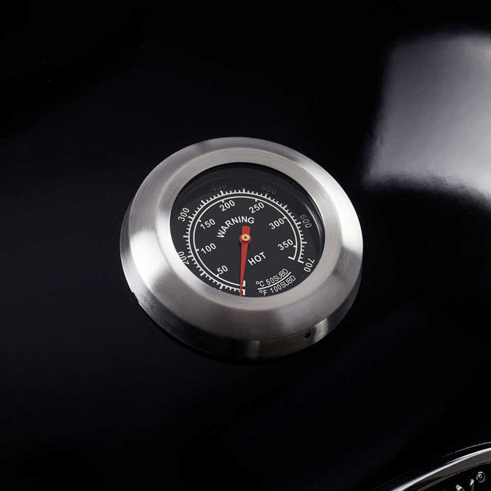 Ignite your passion for traditional barbecue with the Outback Black Comet Kettle Charcoal Barbecue. This sleek, black kettle barbecue is designed to deliver that authentic smoky flavour, thanks to its chrome heat indicator and cooking grill. With a large ash collector and adjustable air vents, it's as practical as it is stylish. Plus, the hub-capped wheels make it easy to move around your garden.