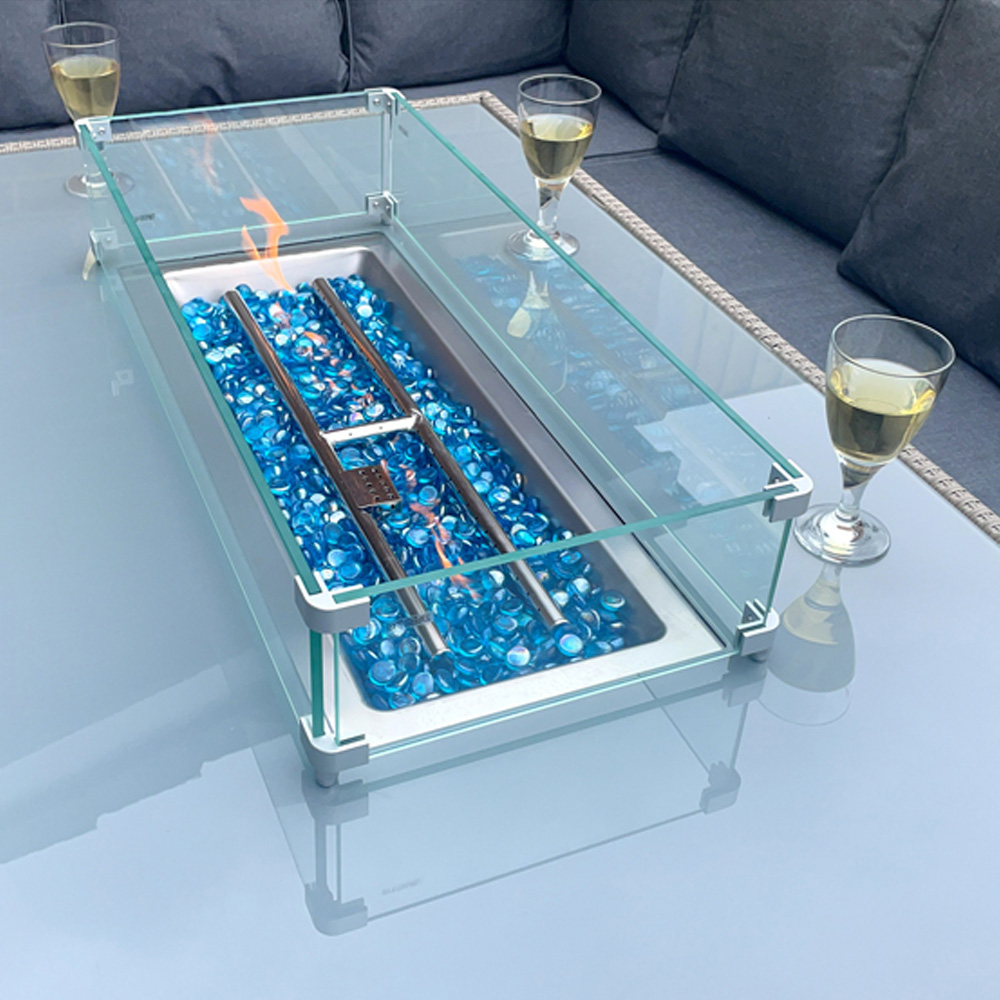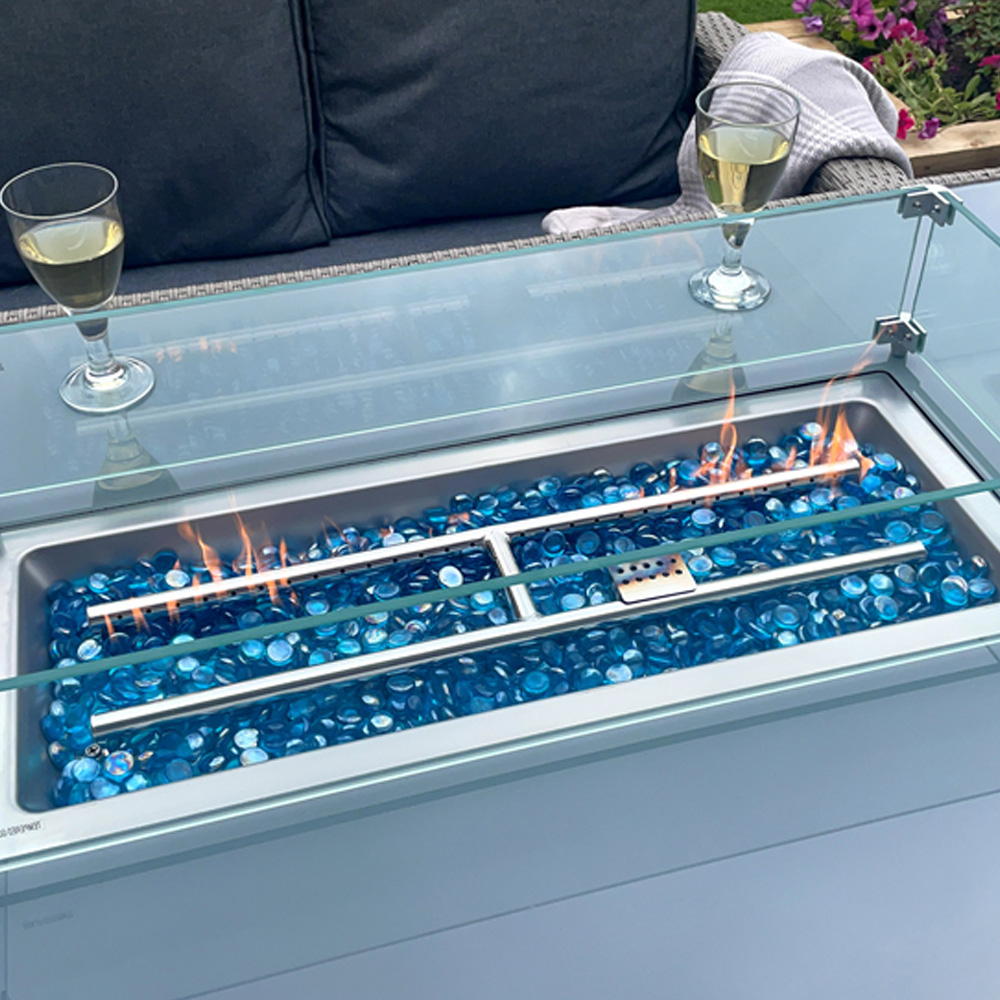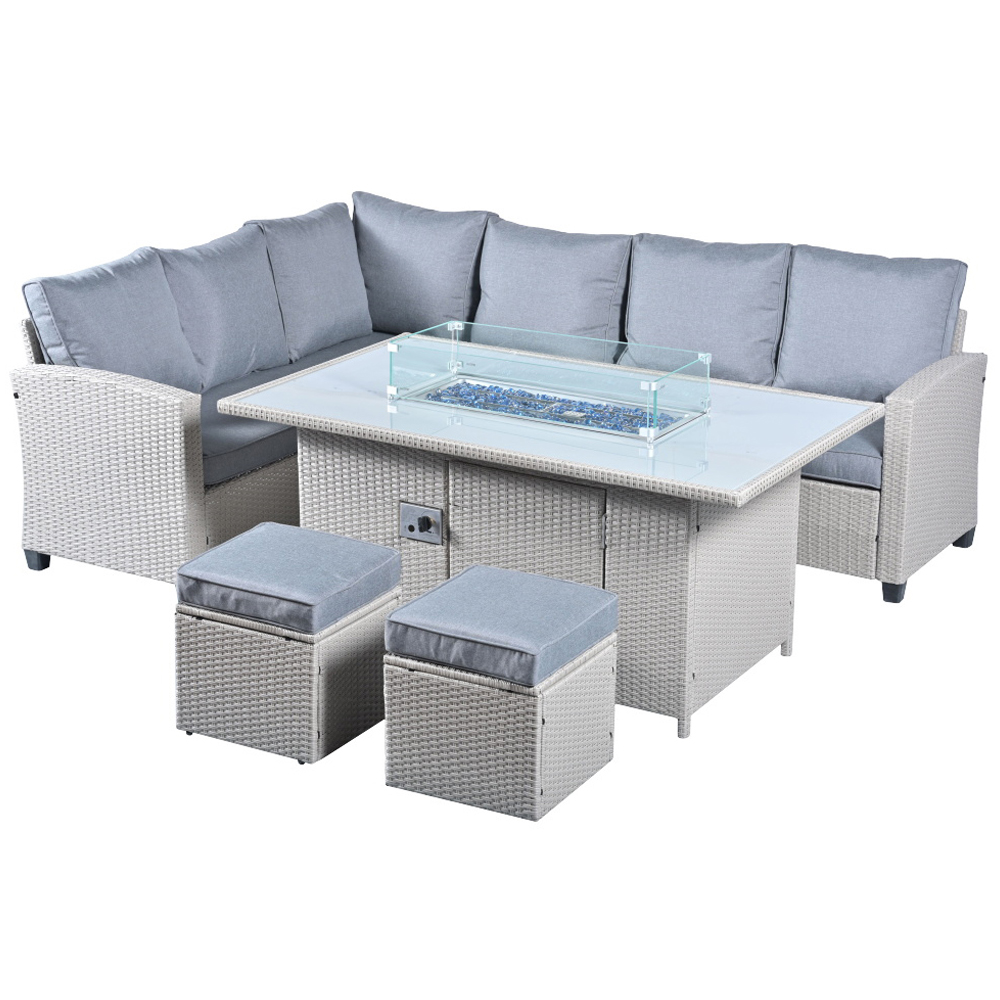Outdoor Living The Conwy 8 Seater Corner Gas Firepit Rattan Dining Set Grey