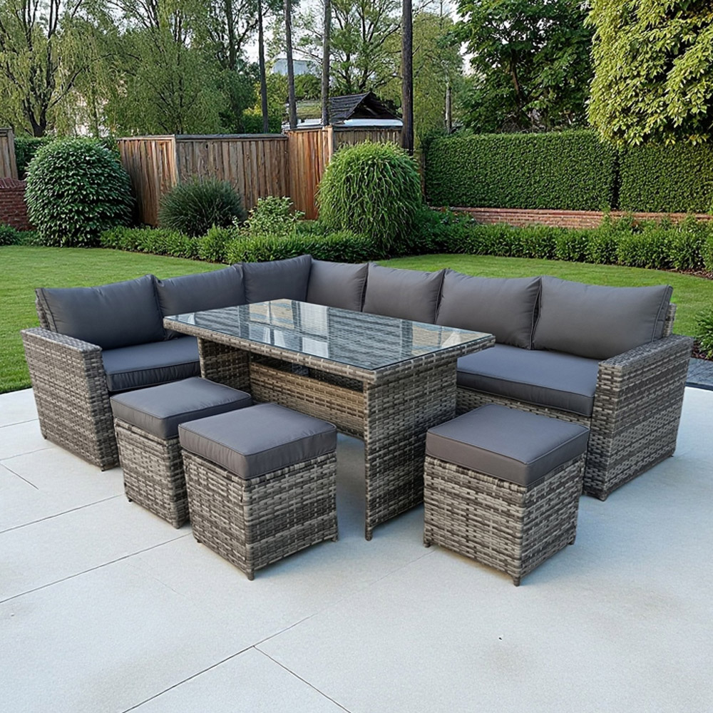 Outdoor Living The Tarporley Rattan 9 Seater Corner Dining Set Grey