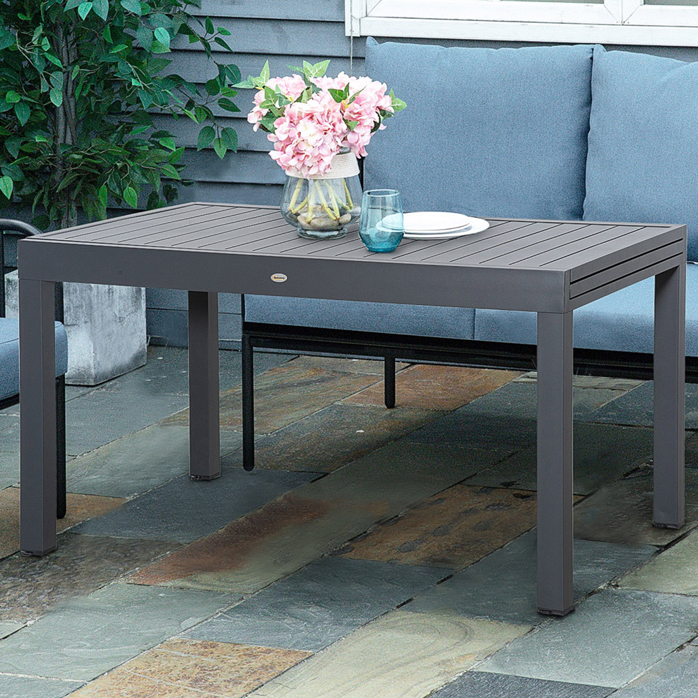 Create a simple yet inviting dining space outdoors with the Outsunny 10 Seater Extendable Garden Dining Table Grey. Pick a stylish addition for dining, afternoon tea and parties on patios, decks and more with this extendable garden table. Powder-coated finish for extra strength, this garden dining table is sturdy. The tabletop extends between 135cm and 270cm, seating between eight to ten people, making it a large table great for when friends and family come over. Protect your garden furniture with our durable and waterproof covers. Explore our wide range of heavy-duty Garden Furniture covers to find the perfect fit for your needs.