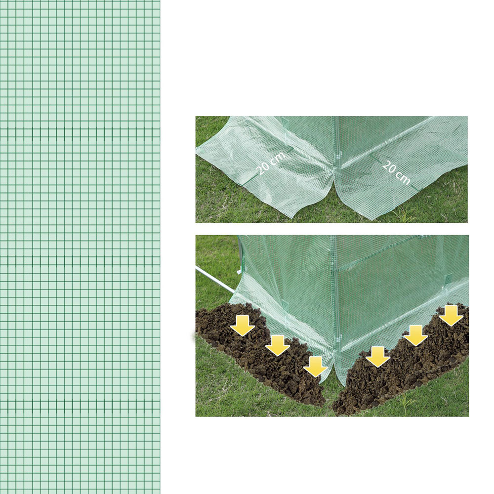 Keep your plants growing all year round with this replacement greenhouse cover. Designed for larger outdoor spaces like gardens and allotments, this 10 x 7ft cover is perfect for protecting your plants, vegetables, fruits, and herbs. The durable PE cloth construction shields against light rain and wind while trapping heat for optimal growing conditions. Convenient roll-up windows on each side, secured with fasteners, provide fresh air circulation. The cover attaches easily to your existing frame with the included tape, extending the life of your greenhouse.