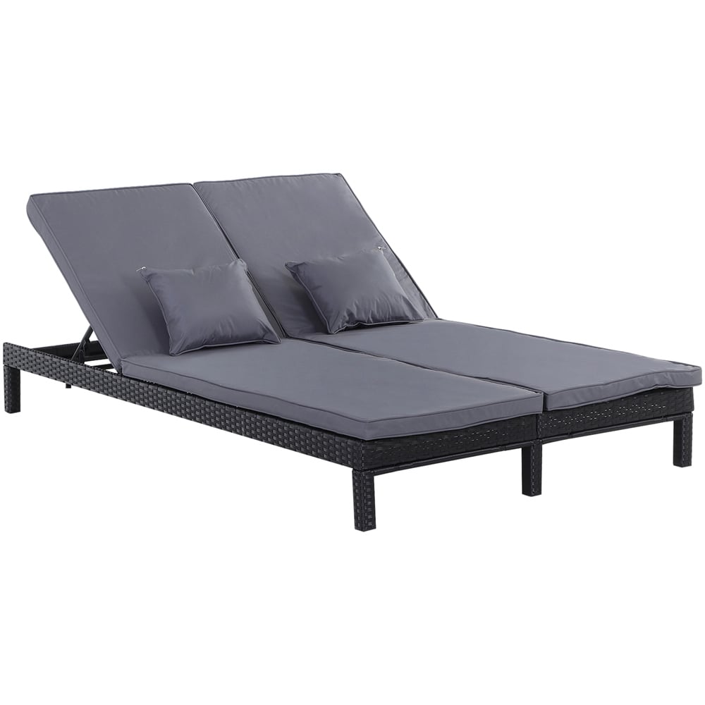 Outsunny 2 Seater Black Rattan Sun Lounger