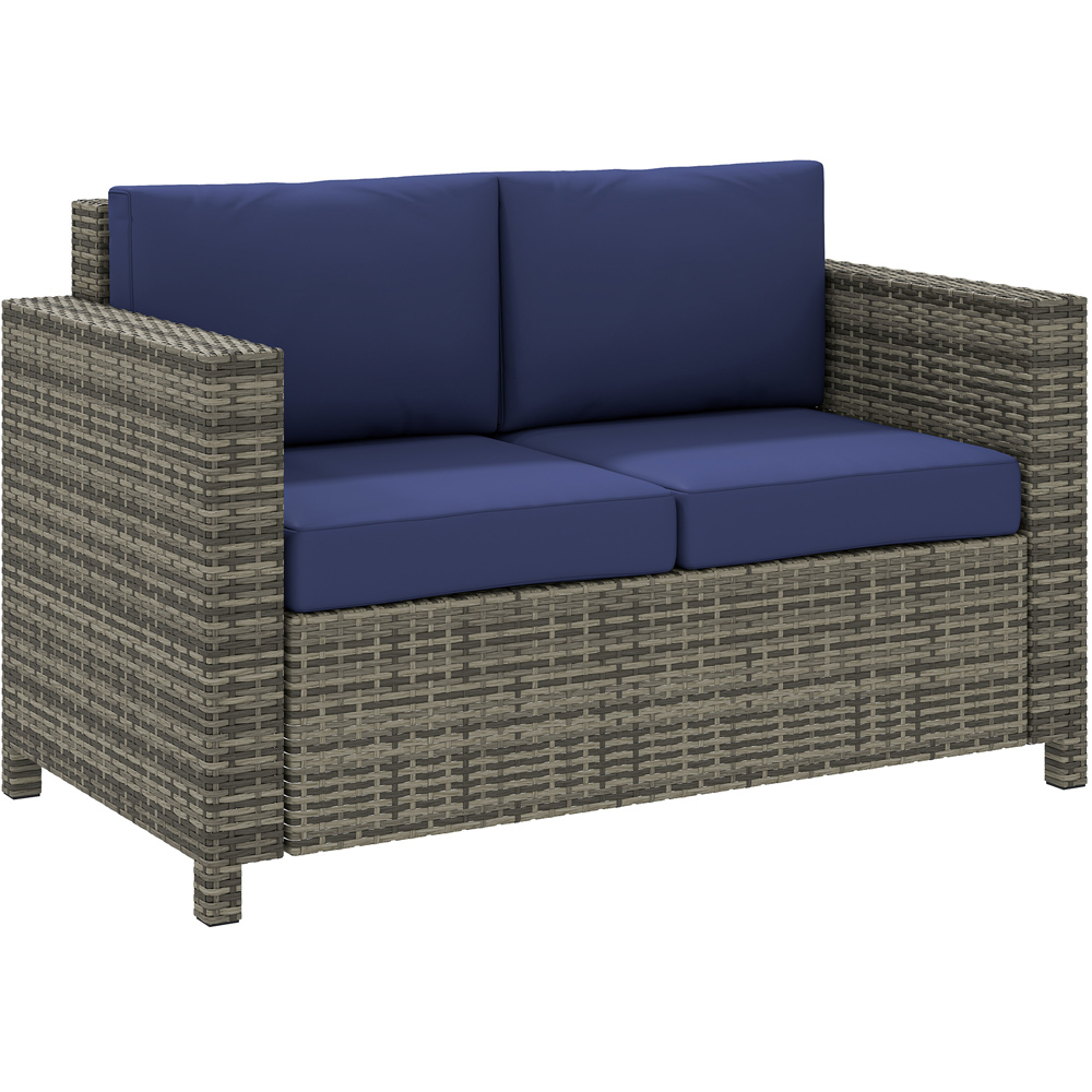 Outsunny 2 Seater Blue Rattan Wicker Padded Sofa