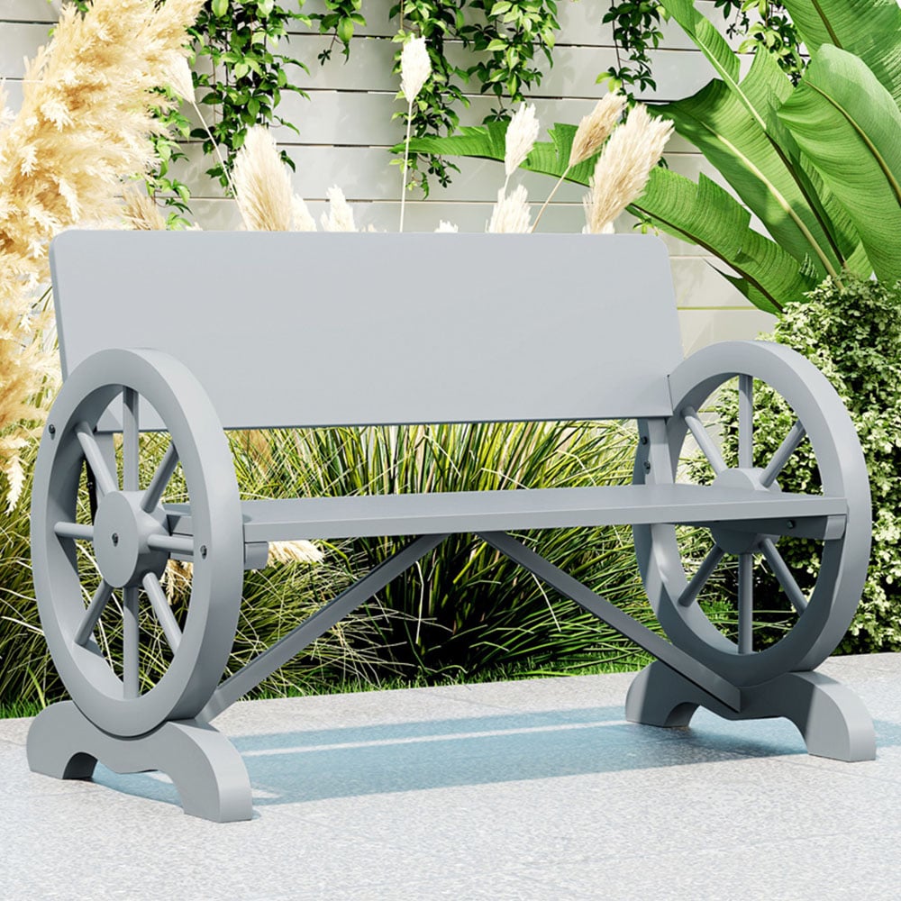 Bring a touch of rustic charm to your garden with this Outsunny wooden bench. Inspired by Texan wagon wheels, this unique design features a comfortable two-seater bench flanked by eye-catching wheel accents. Crafted from sturdy fir wood, this outdoor bench offers a solid and reliable seating solution, supporting up to 250kg. With a wide seat and gently angled backrest, this wagon wheel bench ensures a comfortable and supportive place to relax and enjoy your outdoor space.