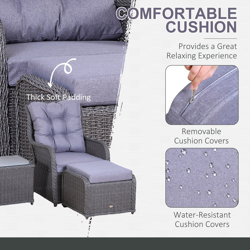 Outsunny 6 Seater Grey Rattan Round Lounge Set with Retractable Canopy