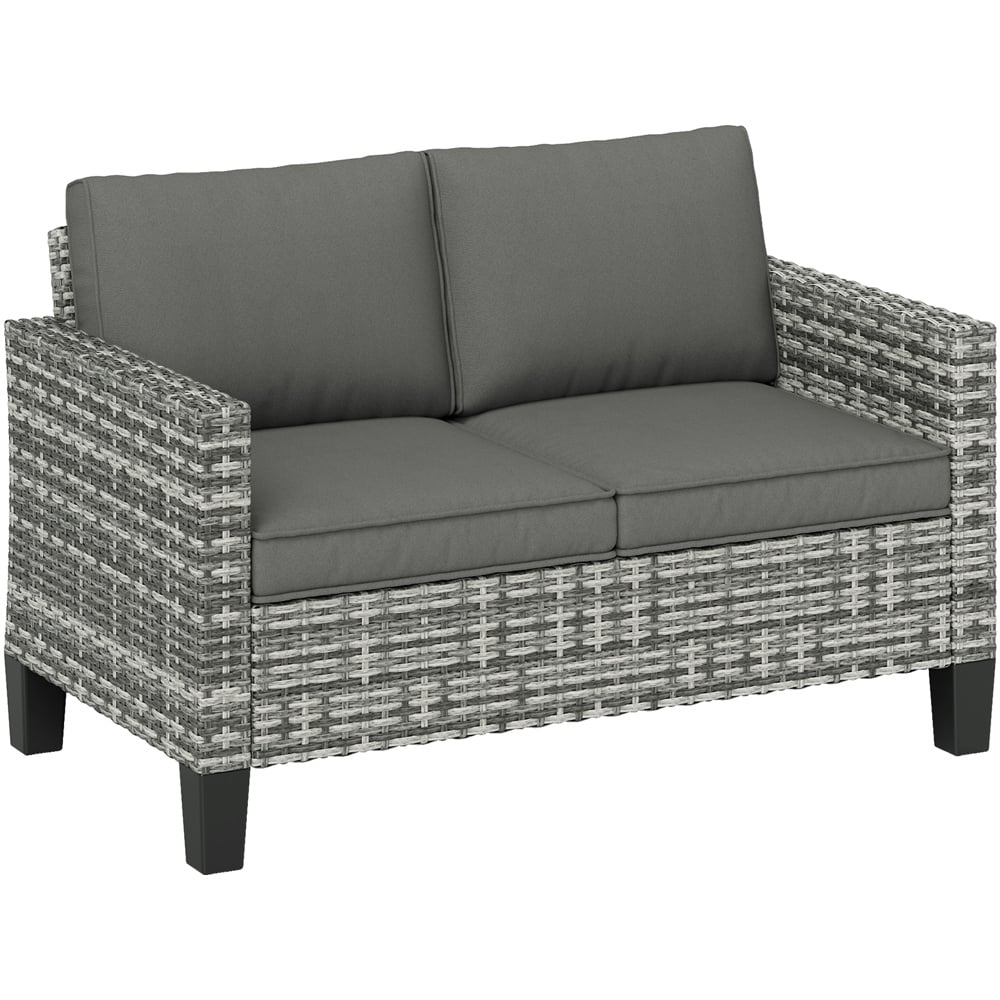 Outsunny 2 Seater Light Grey Rattan Sofa with Cushions