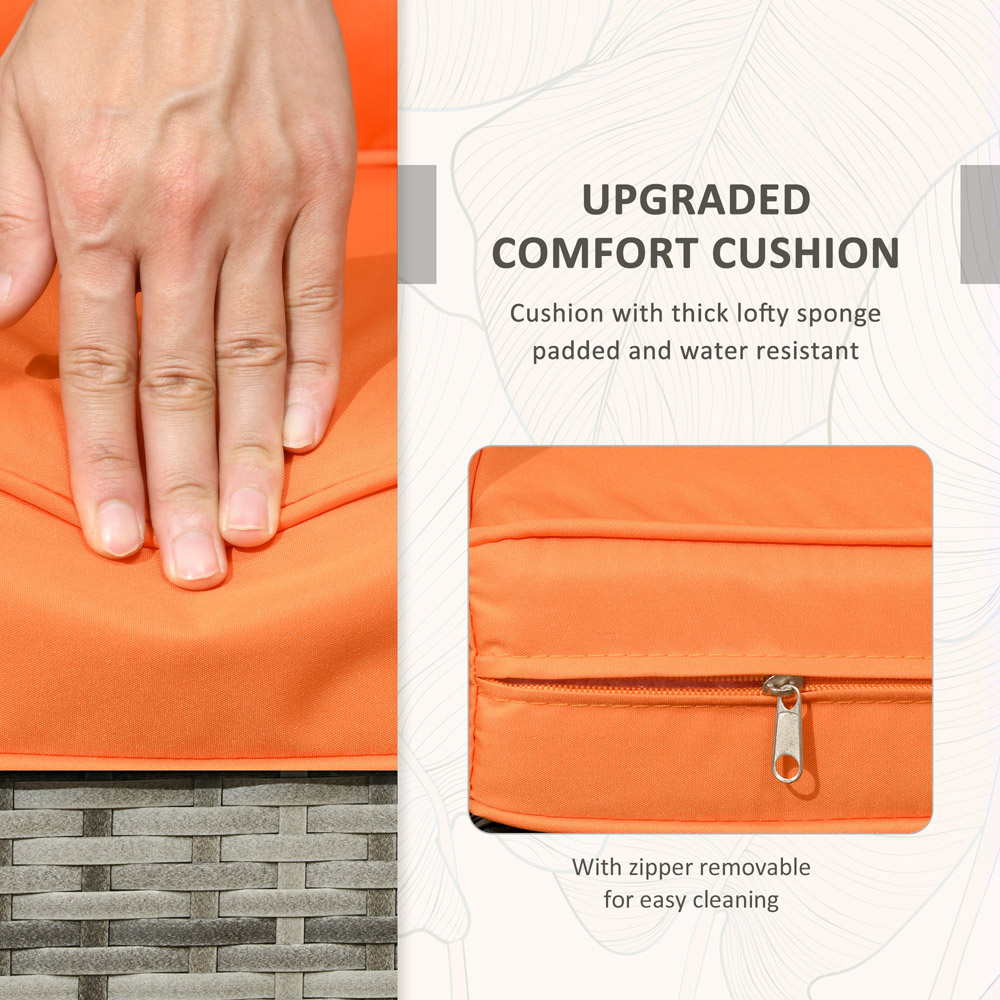Make your outdoor space stand out like never before with the Outsunny 2 Seater Orange Rattan Lounge Set with Storage. Featuring a sturdy steel frame for strong support, the set is wrapped in PE rattan for double durability, also creating a forever-stylish set for your outdoor space. The set has comfortable padded cushions for extra support, and it is resistant to mild weather and harsh UV rays. The cushion covers can be removed and washed to keep them clean. It's a great addition to any backyard, patio, or garden and is sure to become your favourite spot to relax and unwind. Protect your garden furniture with our durable and waterproof covers. Explore our wide range of heavy-duty Garden Furniture covers to find the perfect fit for your needs.