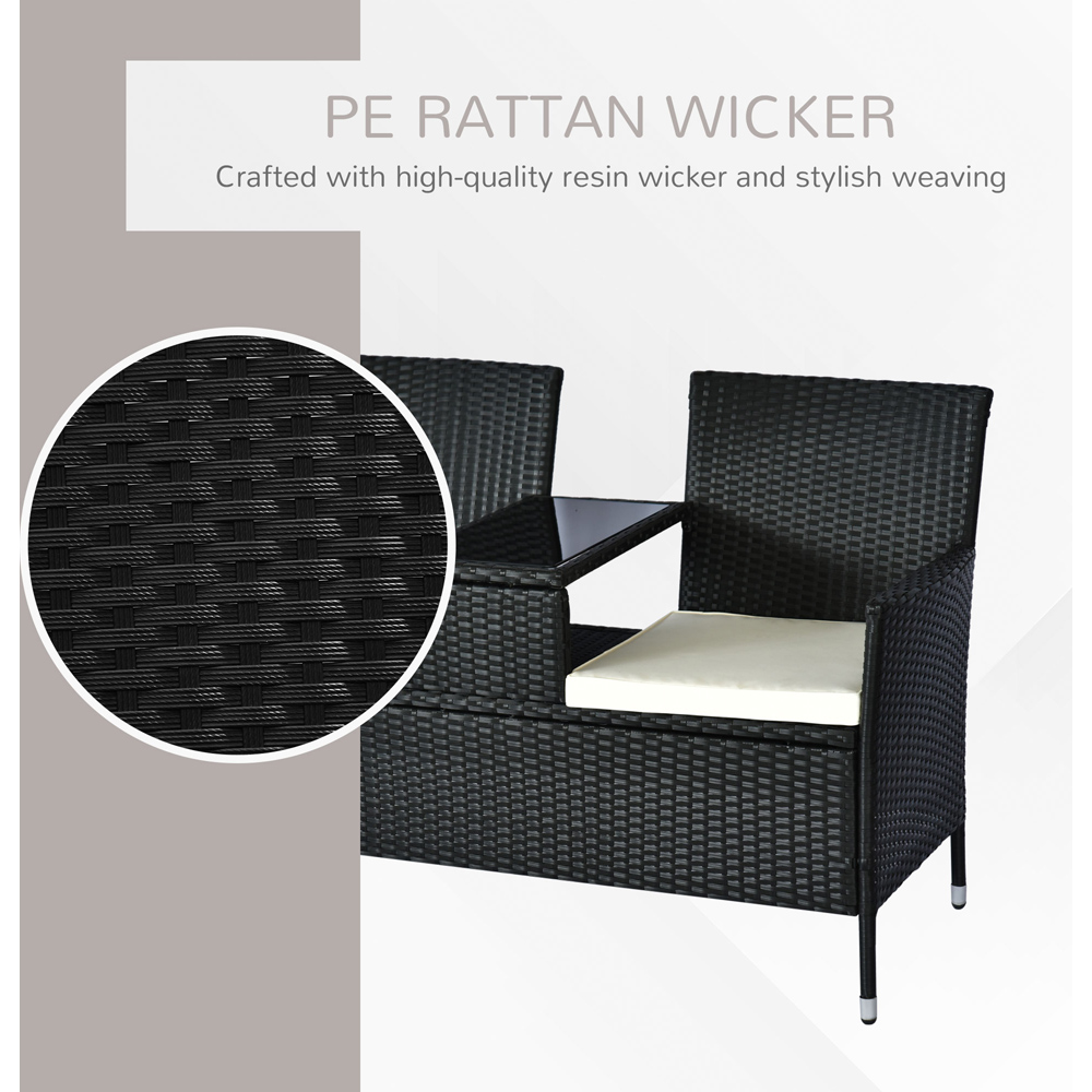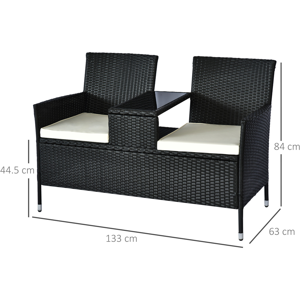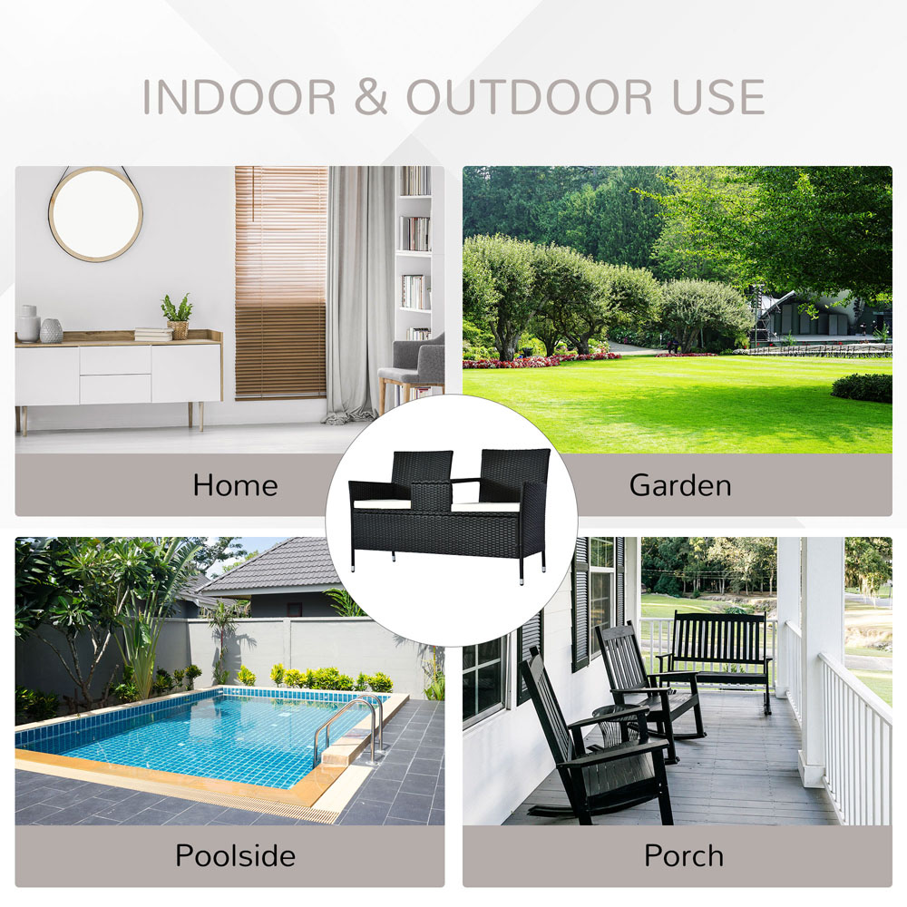 Outsunny 2 Seater Brown Rattan Wicker Padded Sofa