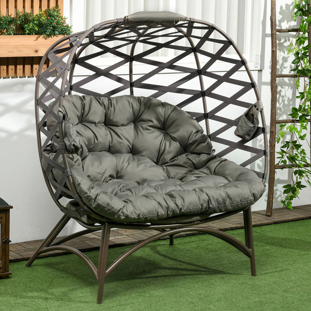 Crafted for companionship and relaxation, the Outsunny two-seater Egg Chair brings a touch of elegance to your outdoor space. Designed in a distinctive egg shape, this chair provides ample room for you and a friend to unwind. A generously padded cushion ensures lasting comfort, inviting you to settle in and enjoy the garden. The robust, powder-coated steel frame offers unwavering support, while the cross-weave detailing adds a subtle, sophisticated flair. For added convenience, two side pockets provide a handy spot to keep your essentials close at hand. Presented in a Sand Brown finish, this chair effortlessly complements any outdoor setting. To ensure your garden furniture remains in pristine condition, explore our range of durable and waterproof garden furniture covers.