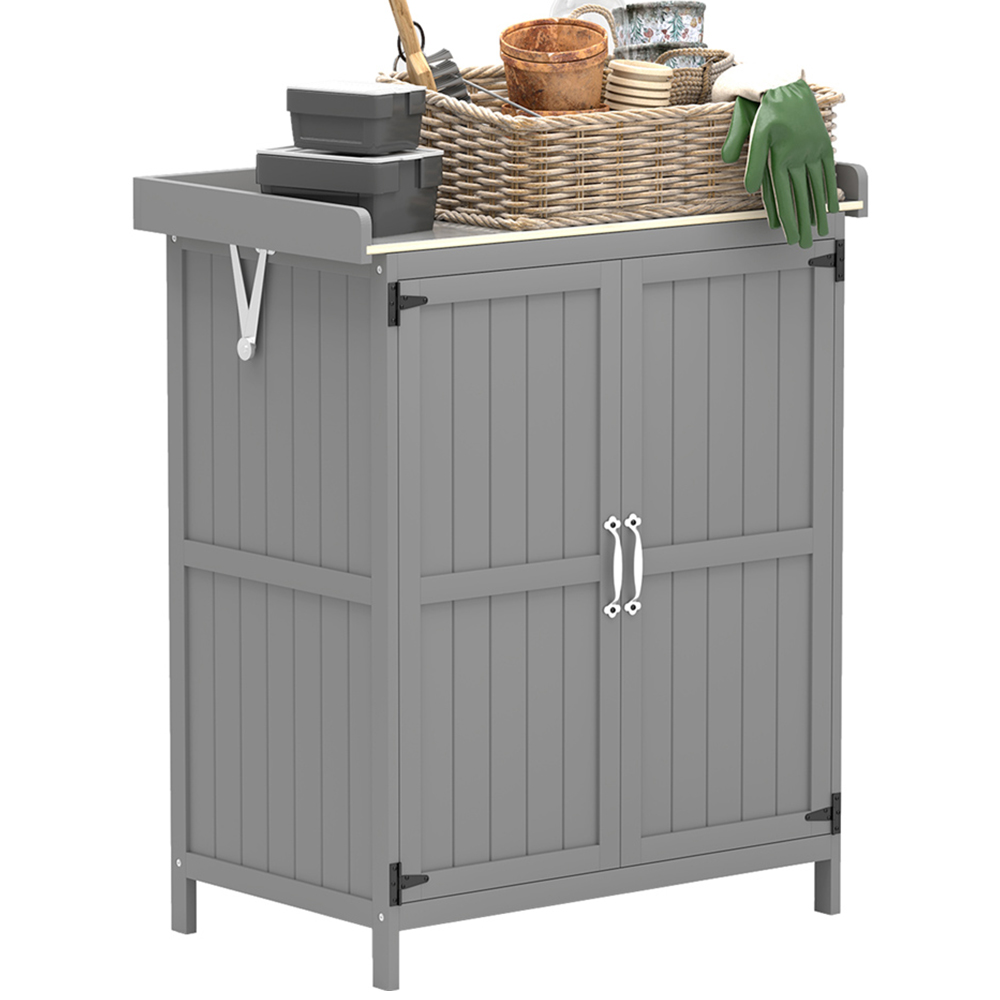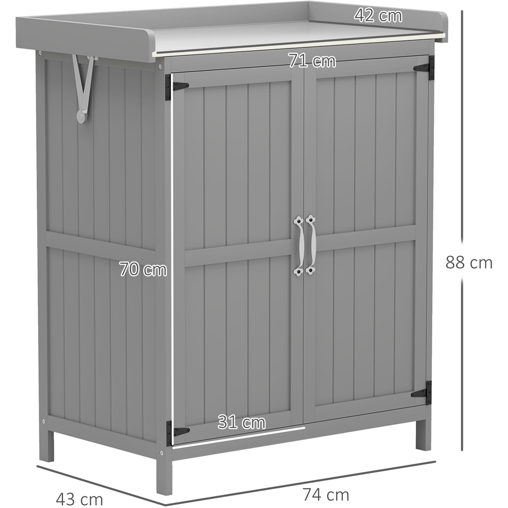 Outsunny 2 Shelf Grey Wooden Garden Storage Cabinet with Hinged Roof