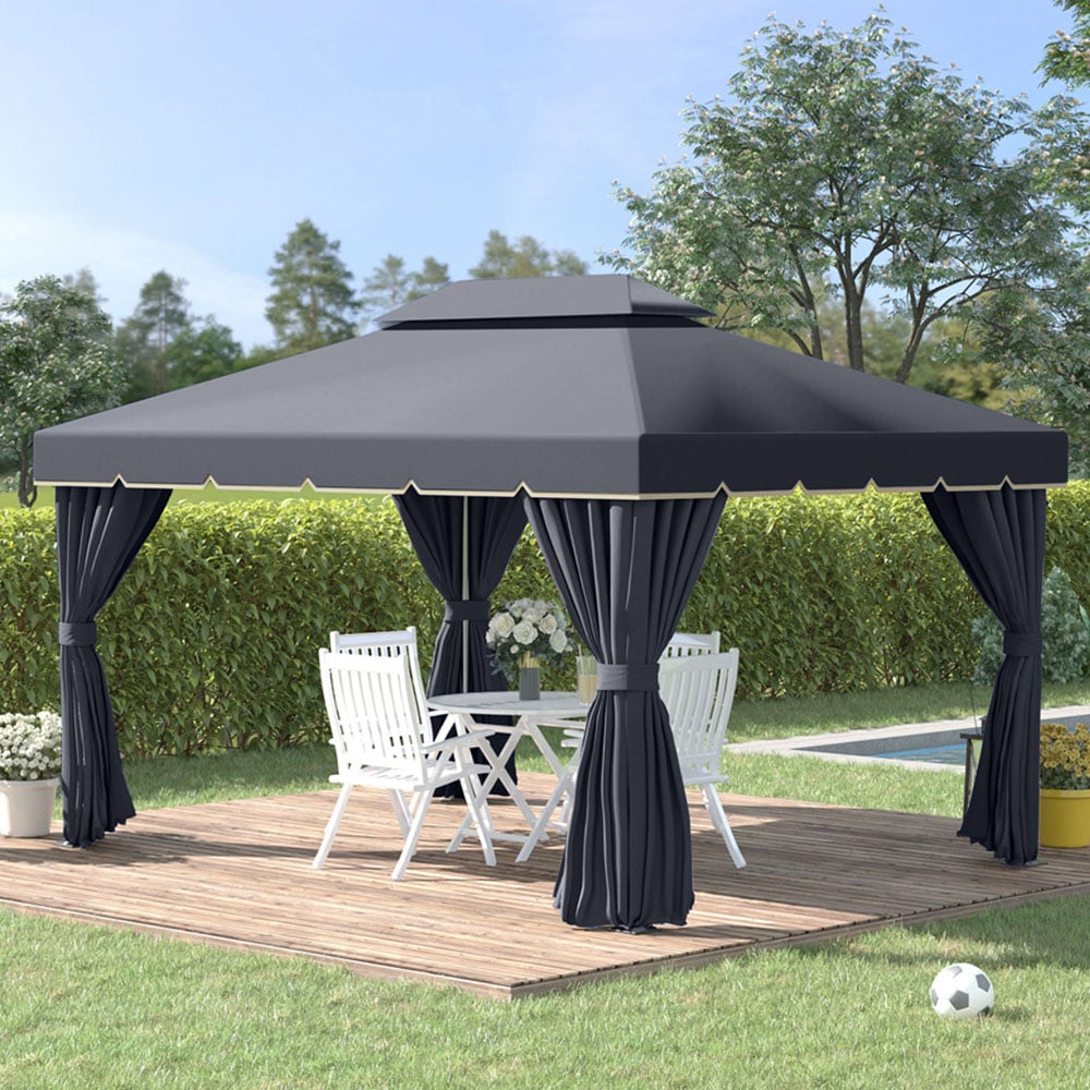 Create lasting memories with this generously sized 4m x 3m gazebo, perfect for hosting memorable gatherings. Its spacious design comfortably accommodates numerous guests, while the included curtains offer versatile privacy, transitioning seamlessly from open-air enjoyment to a more intimate setting. Integrated mesh panels within the curtains provide effective protection against insects, ensuring uninterrupted comfort. For enhanced stability, eight ground stakes are supplied. Transform your summer parties with this garden pavilion, ideal for creating the perfect outdoor space.