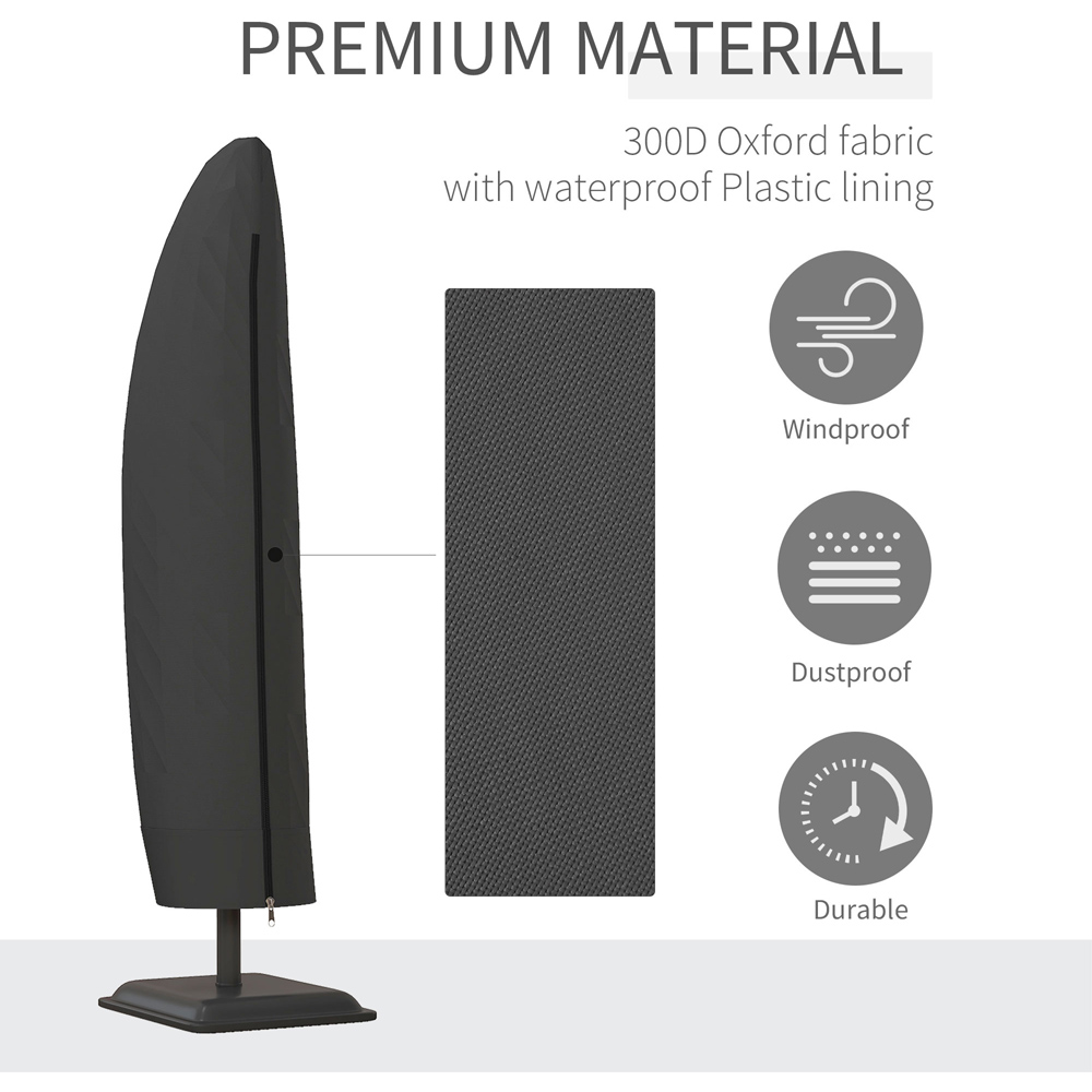Outsunny 220 x 56cm Black Cantilever Banana Parasol Cover with Zipper