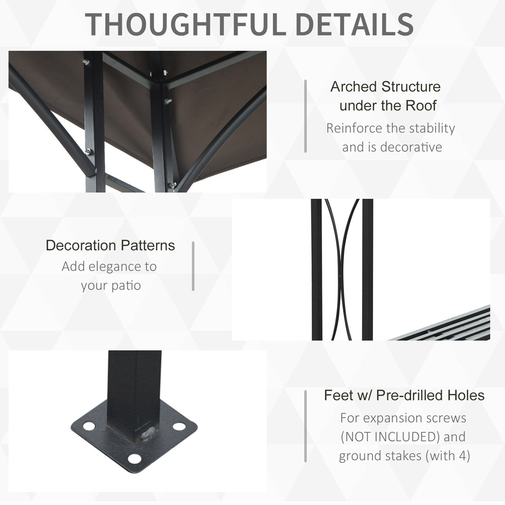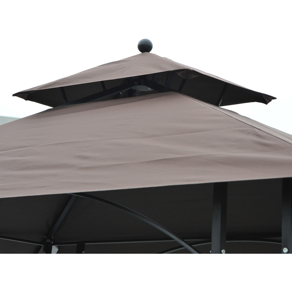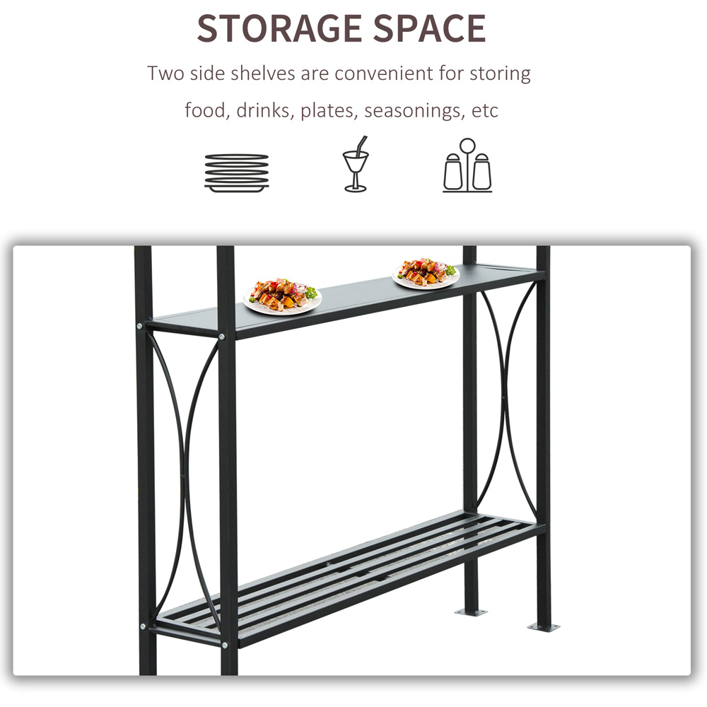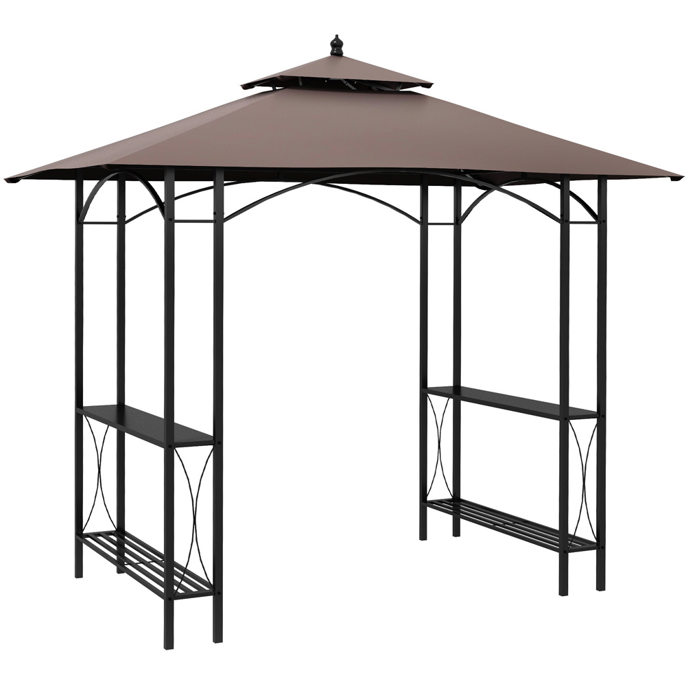 Make an essential addition for the summer season with the Outsunny BBQ Tent, measuring 255 x 150 x 250cm. This canopy provides a protective cover over your BBQ area, facilitating easy cooking and serving. With its double tier design, it ensures proper air circulation and ventilation. Additionally, the tent is equipped with two side serving tables, making it convenient for both family and guests. The gazebo is constructed with a sturdy metal frame and features a top cover made from flame resistant polyester. This versatile item is perfect for entertaining family and friends, while also complementing your outdoor space. It also includes eight ground nails for secure installation. The lightweight metal frame adds to its practicality.