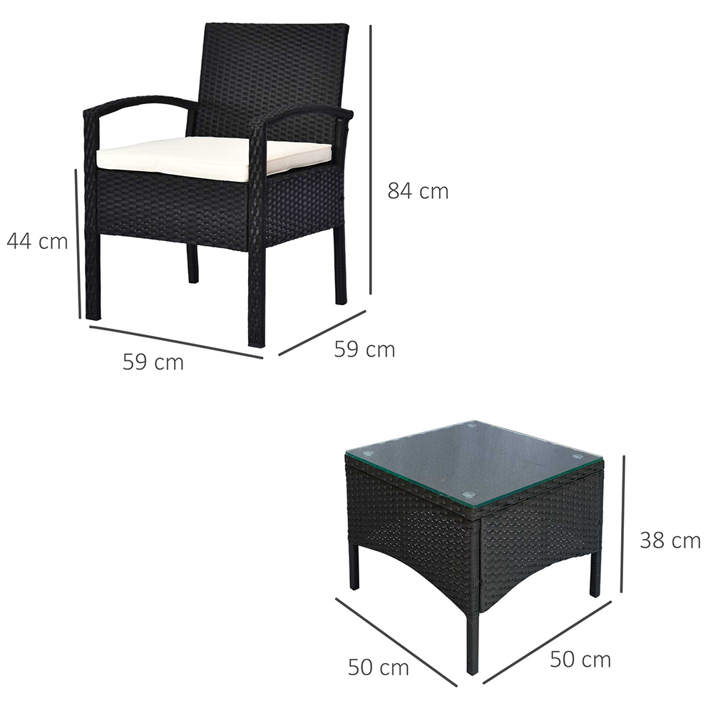 Outsunny rattan bistro set for two with contemporary looks offers you a comfortable and stunning outdoor lounging experience. This conversation set will let you and your family sit back, relax and enjoy great outdoor time. It is ideal for deck, patio, pool side and many more. The garden bistro sets include two chairs and one coffee table. This rattan bistro set is made of steel tube construction, and high-quality PE rattan stands for long-term use, both the test of time and temperature. The garden bistro set comes with a deep armchair with a soft padded cushion to provide a cosy sitting experience. Protect your garden furniture with our durable and waterproof covers. Explore our wide range of heavy-duty Garden Furniture covers to find the perfect fit for your needs.