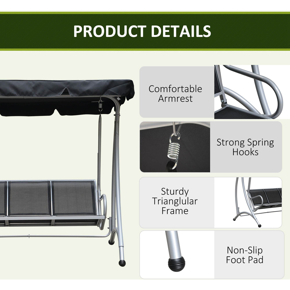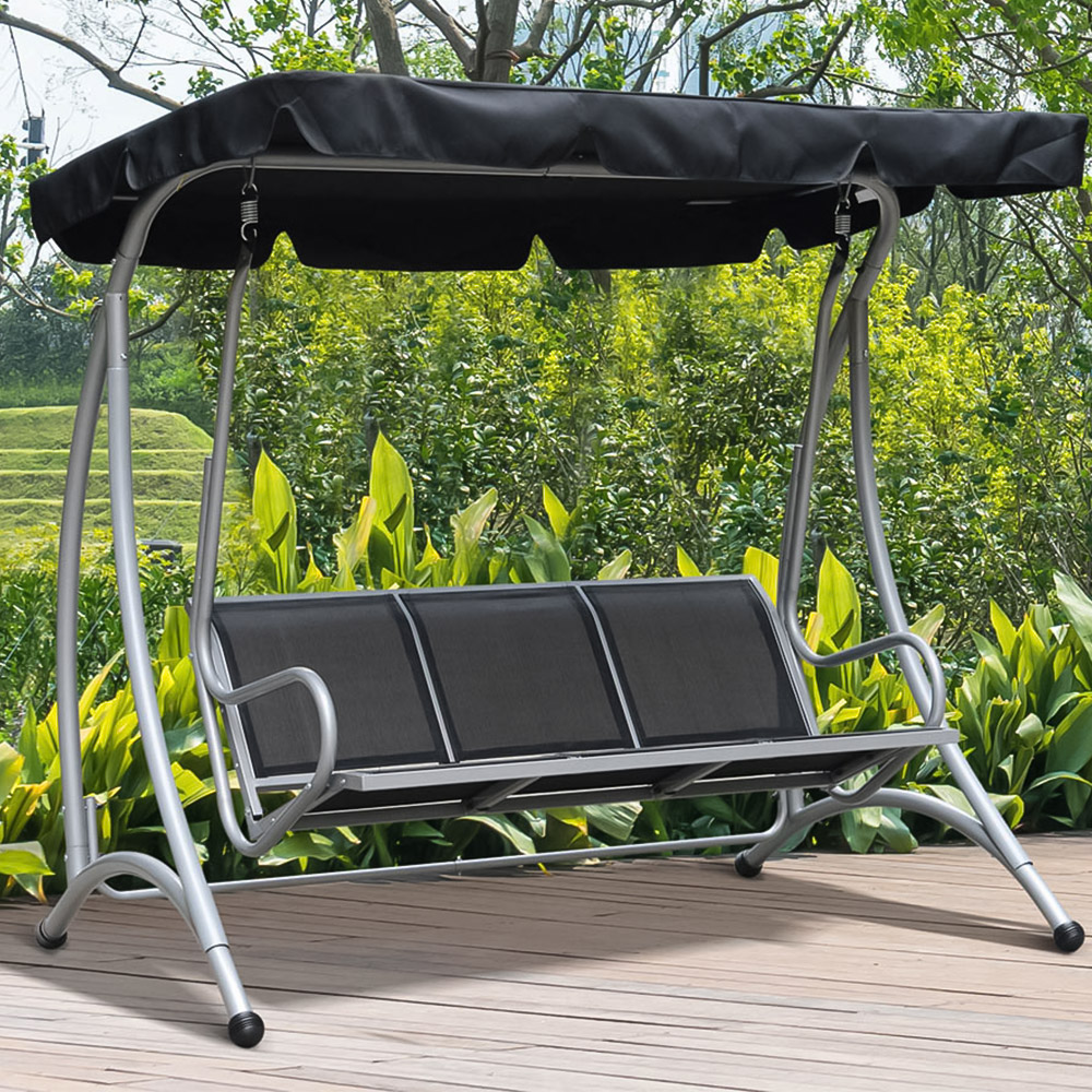 Outsunny 3 Seater Black Garden Swing Chair with Canopy