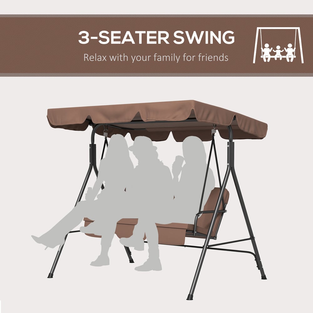Relax in style and comfort with the Outsunny 3 Seater Brown Swing Chair with Canopy. This stylish chair offers ample space for up to three people to lounge together or for you to stretch out and enjoy some extra room. The chair's sturdy powder-coated steel frame provides added strength and durability, while its 'A' shaped legs ensure balance and stability. The canopy's adjustable angle allows you to shield yourself from sun glare, harmful UV rays, and mild rain at different positions, ensuring you stay comfortable and protected. Additionally, the chair's padded seat and high back provide maximum comfort and support, so you can unwind and relax in style. Protect your garden furniture with our durable and waterproof covers. Explore our wide range of heavy-duty Garden Furniture covers to find the perfect fit for your needs.