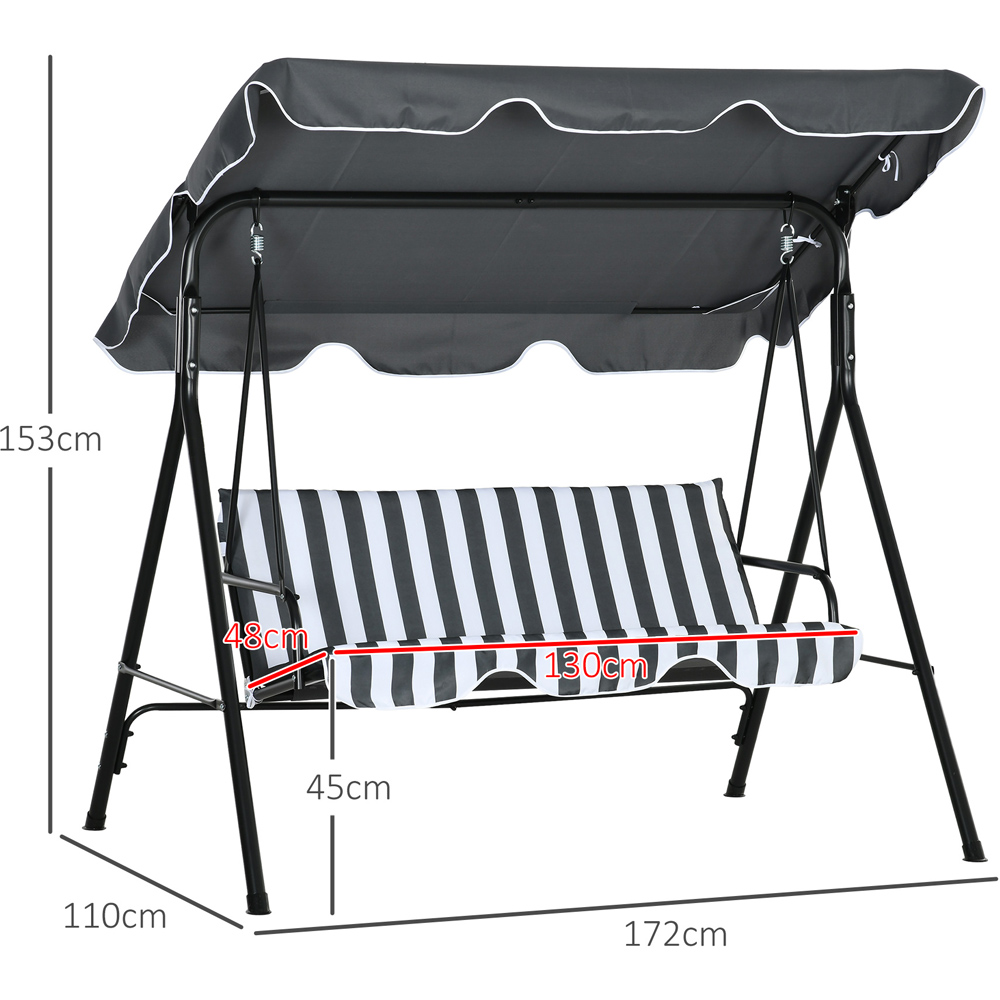 Outsunny 3 Seater Grey and White Swing Chair with Canopy