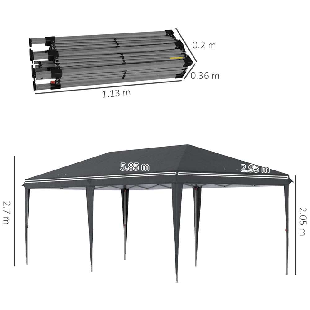 This Outsunny 6 x 3m pop-up gazebo is a great way to create a shaded place when you require it. The garden shelter is made up of a powder-coated steel frame with a 210D Oxford cloth canopy cover. A foldable and easy-assembly design, it's perfect for temporary use and great for outdoor gatherings - like garden parties, BBQs, receptions, car boot sales and more. The silver-coloured lining helps keep inside heat in while protecting against extreme heat and direct sunlight. Three different heights - choose the best for you. It comes with ground pegs and guy ropes to secure it to the ground for extra stability. It comes complete with a handy carry bag. Powder-coated metal for extra strength, this strong and spacious structure is perfect for hosting plenty of friends, family and others in the camping gazebo.