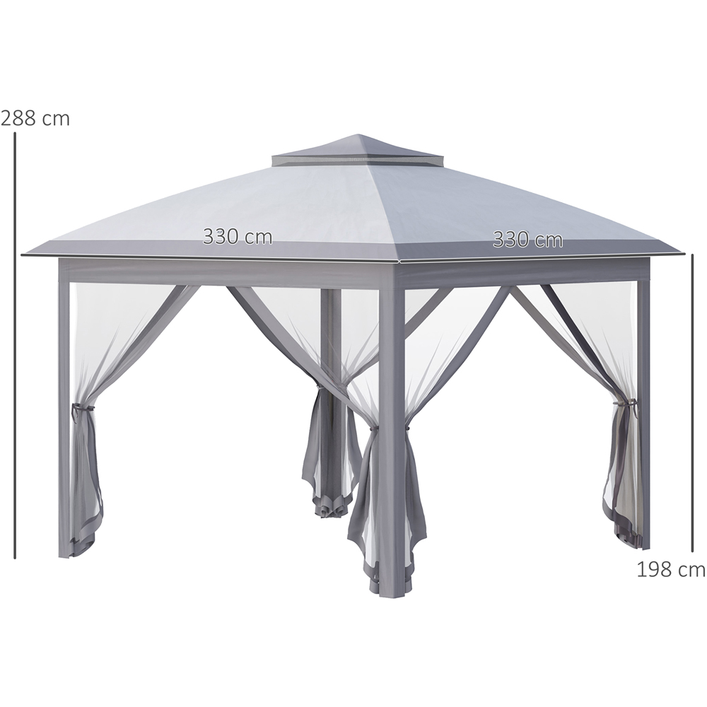 Outsunny 3.3 x 3.3m Grey Pop Up Double Roof Gazebo