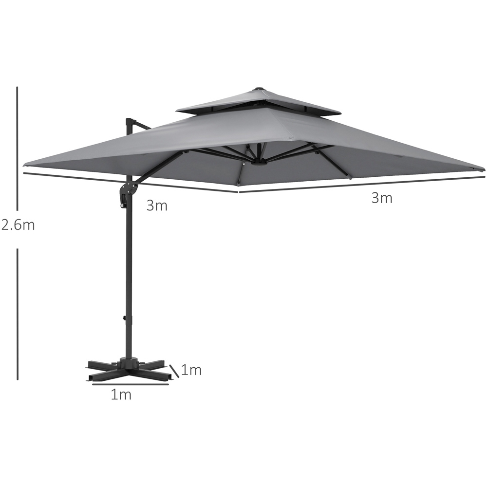Outsunny 3m Light Grey Crank and Tilt Cantilever Roma Parasol with Weighted Base