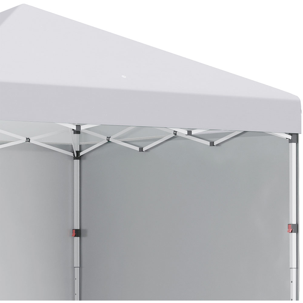 Whether it's a camping trip, cookout, or just a place to protect your outdoor couch, Outsunny's 3 x 3m White Pop-Up Gazebo with sides goes up in minutes. Complete with a carrying bag, which you can easily transport wherever you need, they unfold fast to provide UV30+ protection. Featuring a two-wall design, the garden gazebo is a mix of an open and closed design which creates a safe shelter that doesn't feel too cramped with all your guests standing all together, while the walls are also removable. The custom height canopy allows you to easily customize the height to fit the occasion. You can raise or lower the canopy between three height settings, 274, 264 and 254cm. The height-adjustable legs lock in place at the push of a button. The stakes, guy ropes, and sandbags work together to stabilize your gazebo on soft ground, and holes on top drain away the rain. It not only stops sunburns but also aids other summer woes. Never leave your shelter unattended; take it down before a major storm rolls through. Always use both the included stakes and the guy ropes when using your pop-up gazebo. Assembly required. Overall Dimensions: L 297 x W 297 x H 274cm. Folded Size: L 115 x W 18 x H 18cm. Eaves Height: 210cm. Column Spacing: L 291 x W 291cm. Walls Size: W 297 x H 197cm. Sand Bag Size: L 33 x W 38cm.