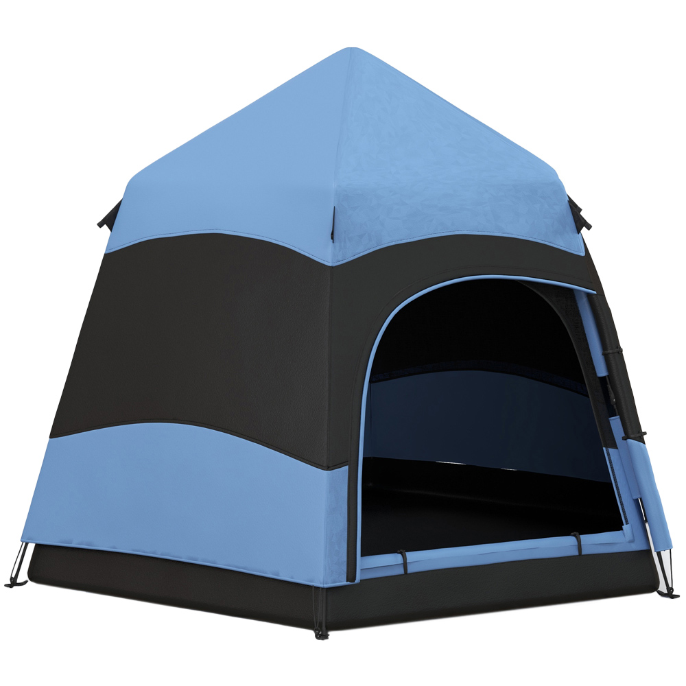 Outsunny 4 Person Hexagon Pop-Up Camping Tent Blue