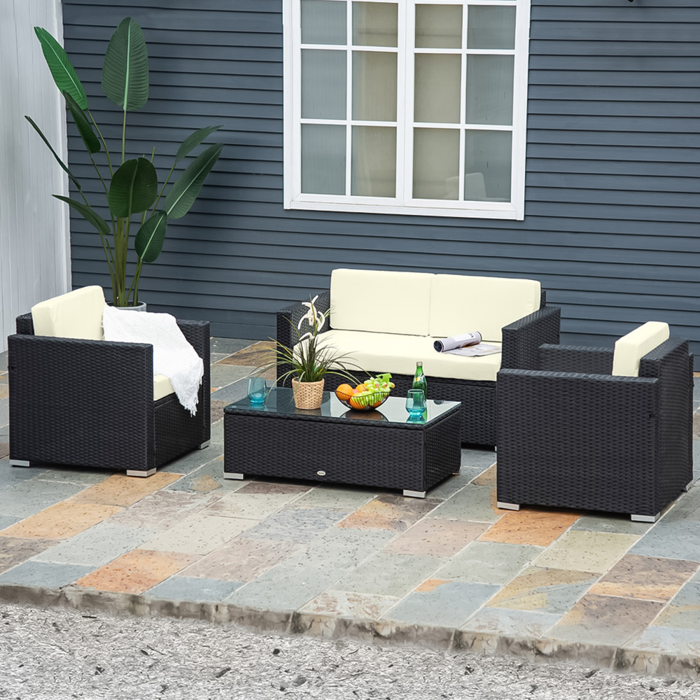 Outsunny 4 Seater Black and White PE Rattan Sofa Lounge Set