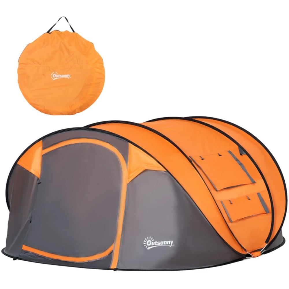 Outsunny 4 to 5 Person Pop up Waterproof Camping Tent Orange and Grey