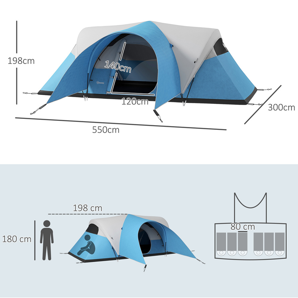 Outsunny 5-6 Person Waterproof Camping Tent Blue
