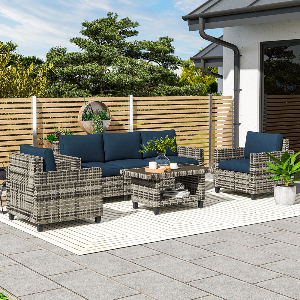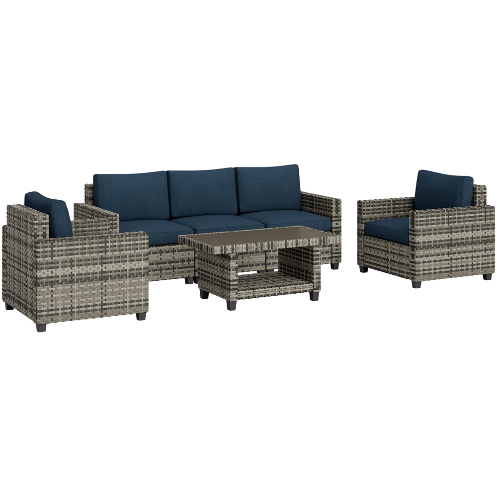 Outsunny 5 Seater Navy Blue Wicker Sofa Lounge Set