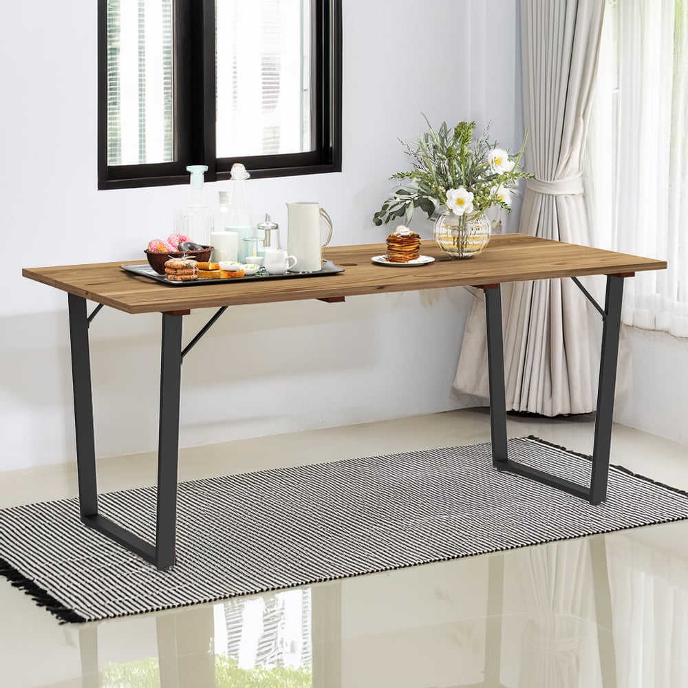 This Outsunny garden table offers a delightful setting for outdoor gatherings, comfortably seating up to six people. Ideal for al fresco dining, this spacious table features a fir wood top paired with a sturdy steel frame, ensuring durability for long-lasting use. Thoughtfully designed with adjustable foot pads for stability and a convenient 5 cm parasol hole, it's a versatile addition to any patio, providing both comfort and practicality for sunny day meals.