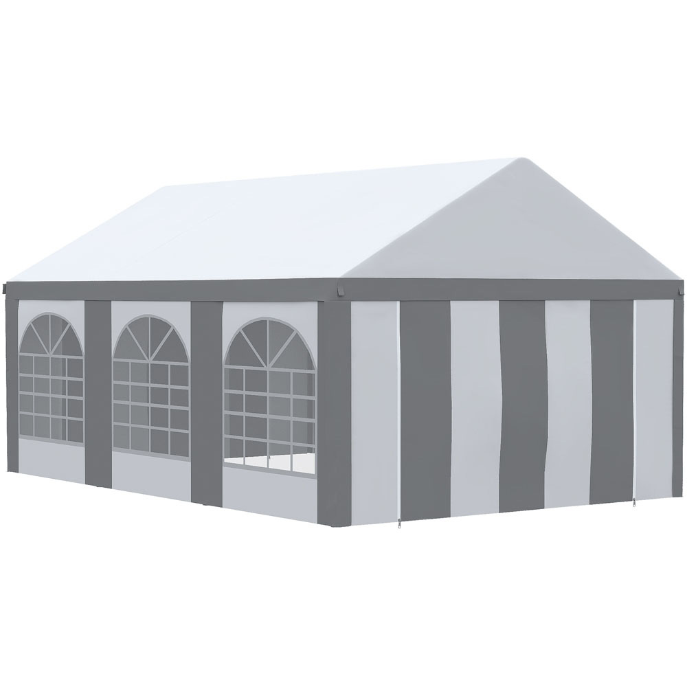 Welcome guests in style this season with the Outsunny 4 x 6m Grey Marquee Gazebo. Its robust core is formed from a galvanised steel frame, complete with a thick plastic canopy for a safe, sheltered haven. The roof offers essential protection from direct sunlight, light winds, and rain, ensuring you and your guests stay comfortable, whatever the weather.