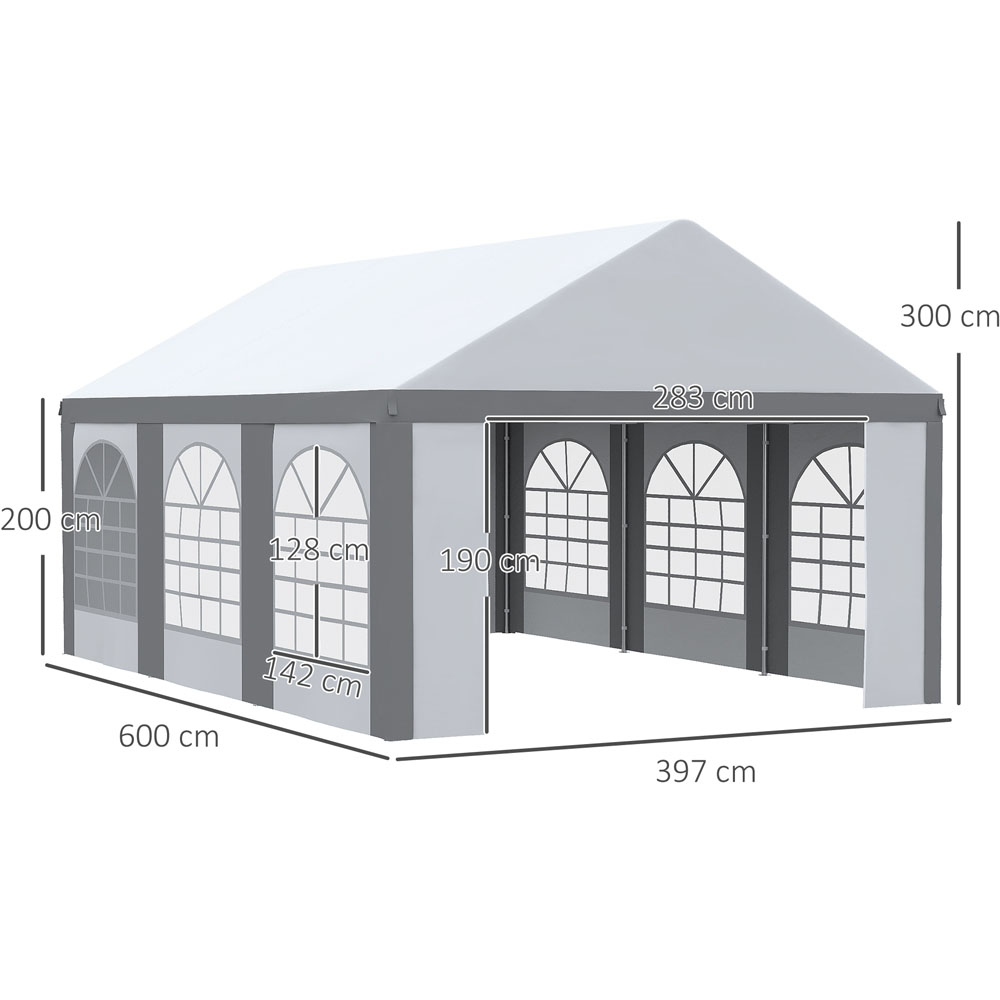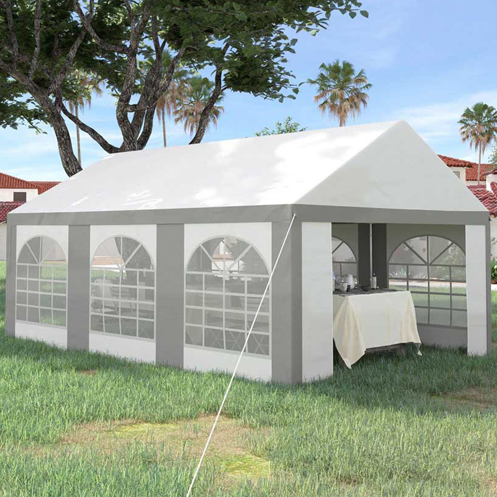 Perfect for hosting up to 24 people, this party tent is ideal for wedding receptions, milestone birthdays, graduation celebrations, summer BBQs, and countless other events. Six windows and two doors flood the garden shelter with natural light, preventing a dim atmosphere when fully occupied.