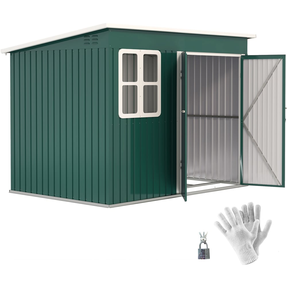 Outsunny 8.5 x 6ft Green Double Door Galvanised Steel Garden Shed with Window