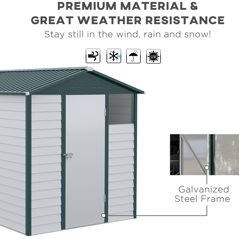 This spacious 8.8ft x 6.3ft metal garden shed offers a robust and secure storage solution for your outdoor equipment. Its galvanised steel construction ensures years of weatherproof performance, while the sloped roof design adds a touch of elegance. A handy window allows natural light to illuminate the interior, complemented by ventilation slots for optimal air circulation. The shed',s open interior provides flexible storage options, allowing you to adapt the space to your needs. Complete with a secure lock and three keys, your belongings will remain safe and protected.
